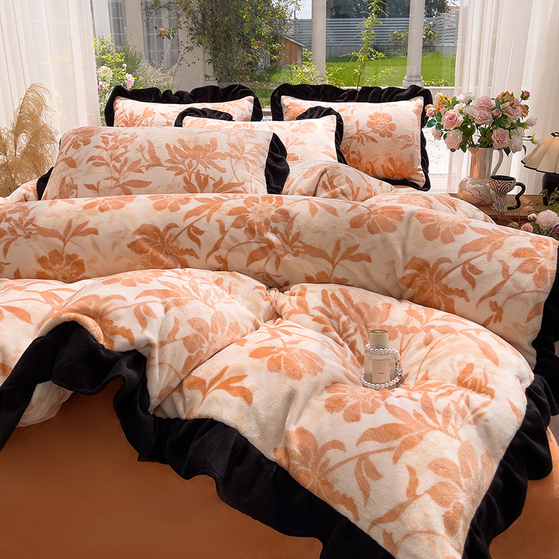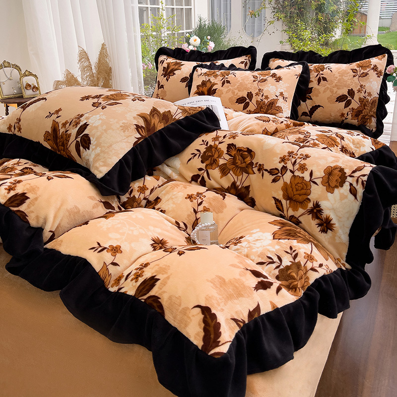 赛丽雅 2025新款牛奶绒床裙四件套8-9斤法莱绒直播爆款日产2万套 晚棠,晚棠