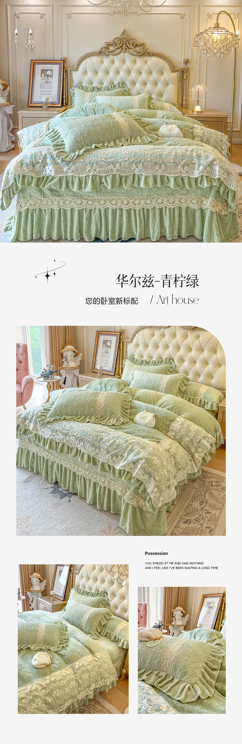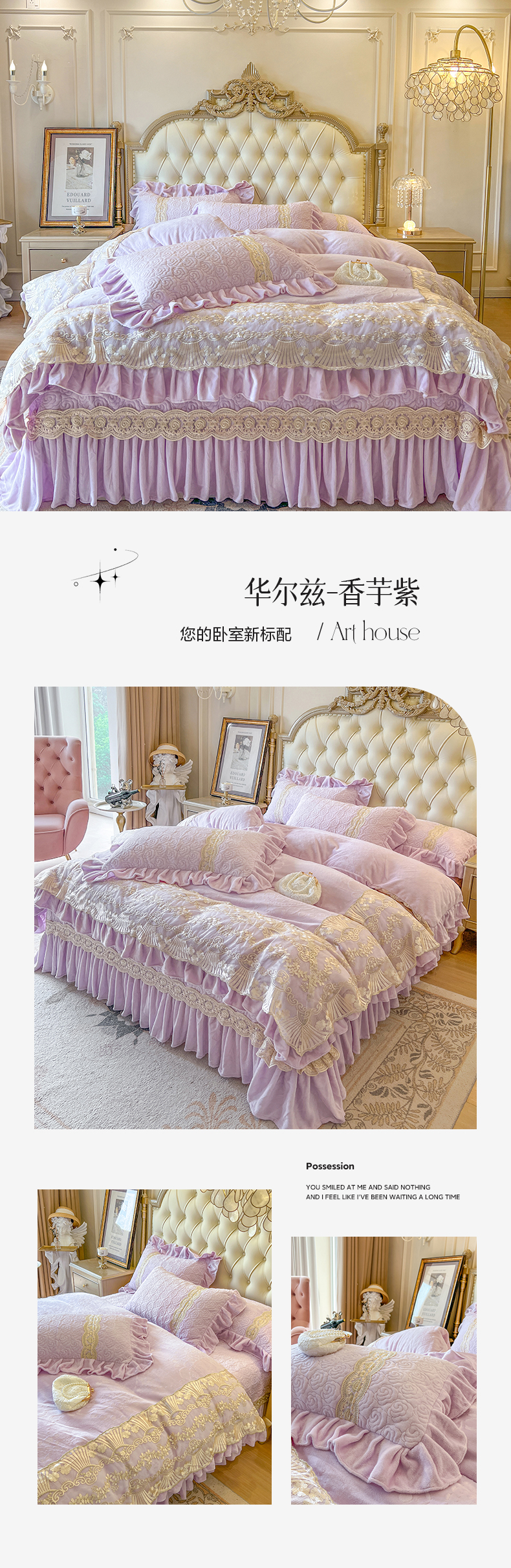 (总)瑞宝 2025新款雕花牛奶绒夹棉床裙四件套-花有约,花有约-粉玉,花有约-卡其,花有约-蔚蓝,花有约-青柠绿,花有约-梦幻紫,花有约-奶油白