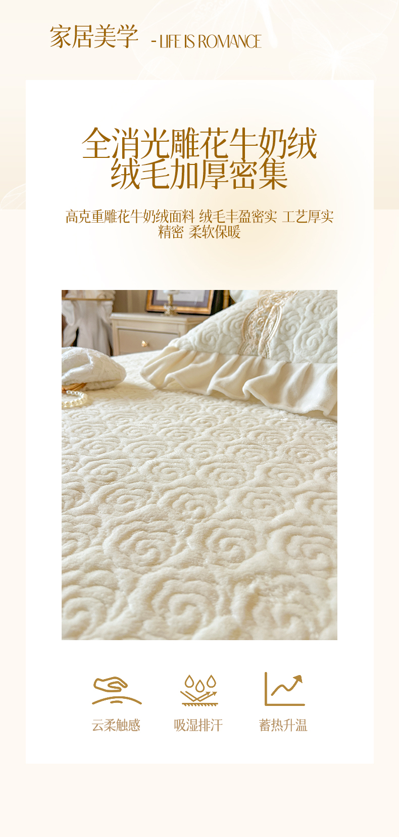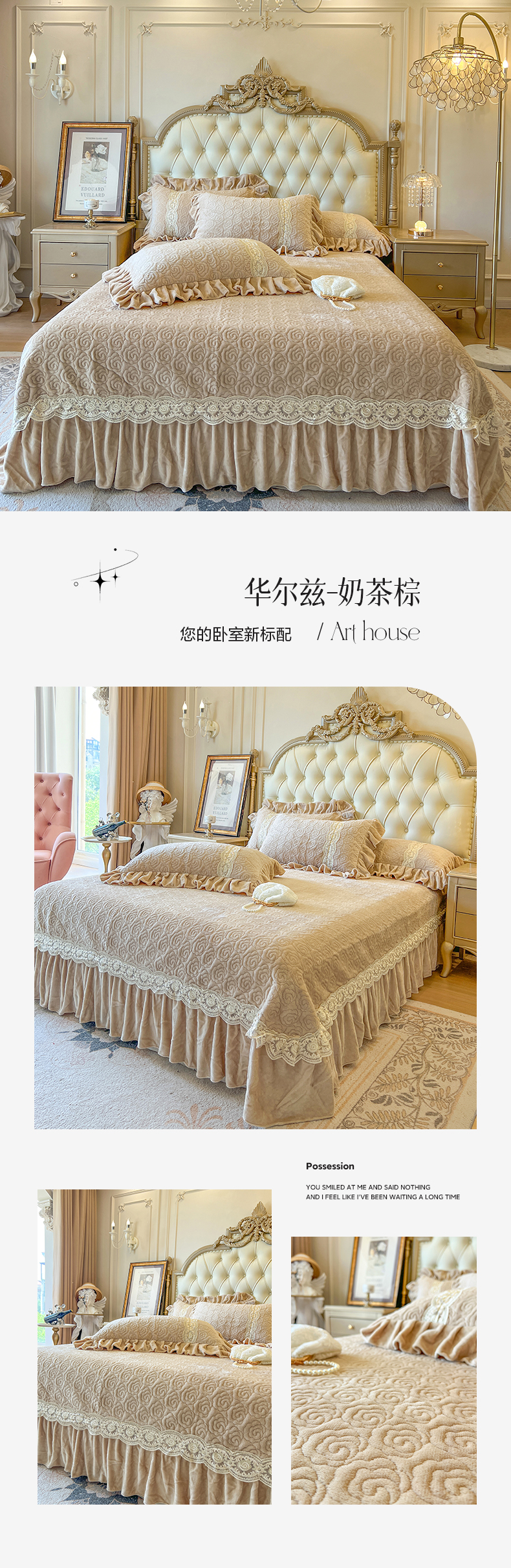 瑞宝 2025新款全消光牛奶绒床盖单件床盖单品单床盖床盖三件套-华尔兹 华尔兹-奶油米