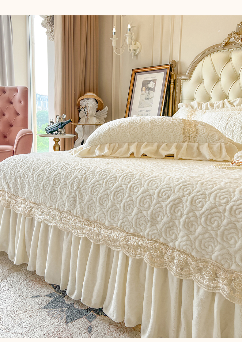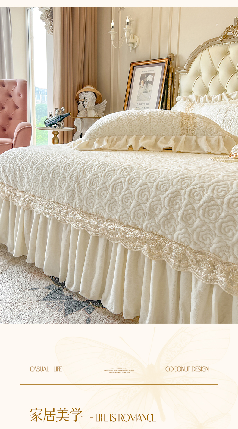 (总)瑞宝 2025新款雕花牛奶绒夹棉床裙三件套-花有约,花有约-粉玉,花有约-青柠绿,花有约-奶油白,花有约-蔚蓝,花有约-卡其,花有约-梦幻紫
