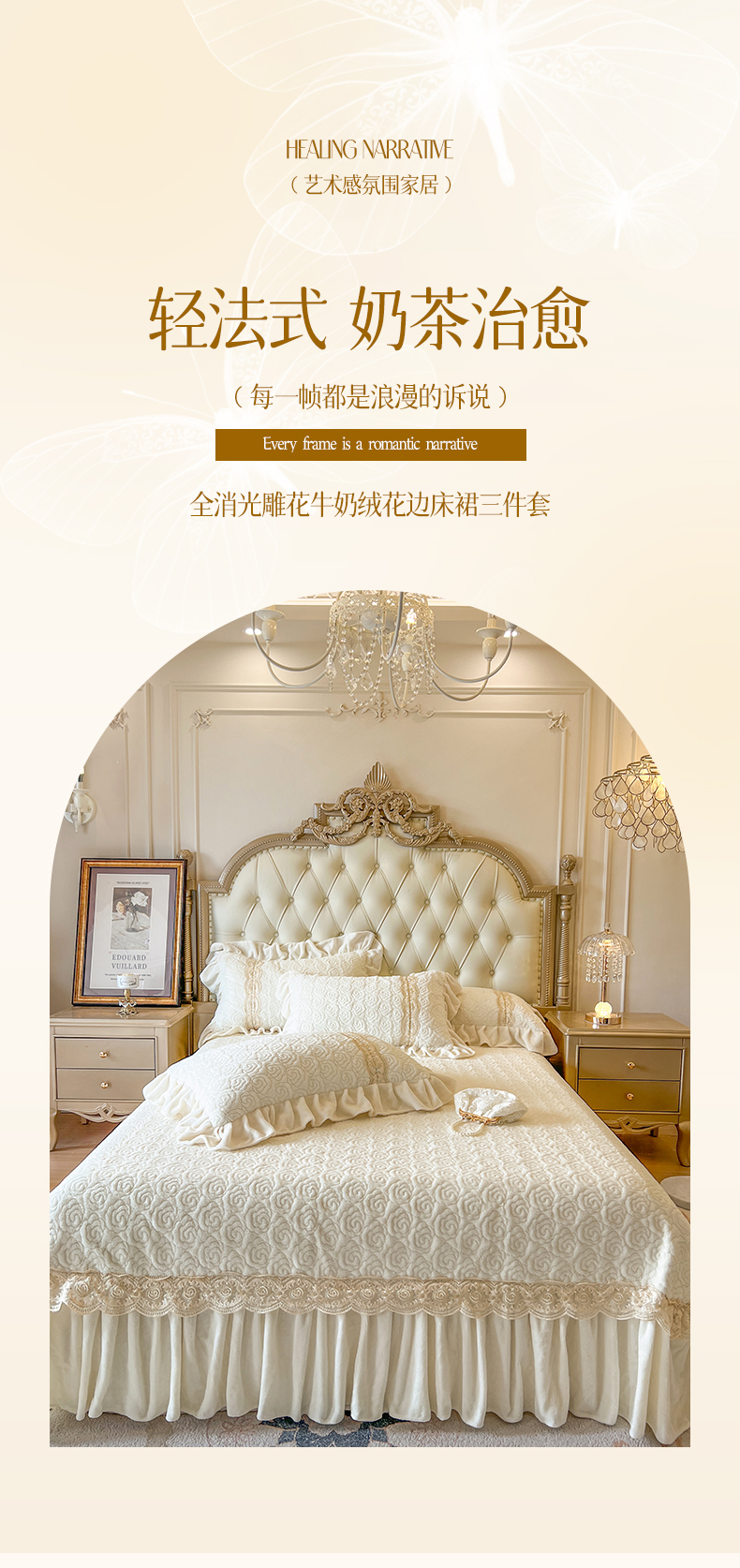(总)瑞宝 2025新款牛奶绒花边床盖四件套-蝶舞花语(控价 298起 ),蝶舞花语-奶茶棕,蝶舞花语-蜜粉,蝶舞花语-奶油米,蝶舞花语-青柠绿,蝶舞花语-香芋紫,蝶舞花语-星空蓝
