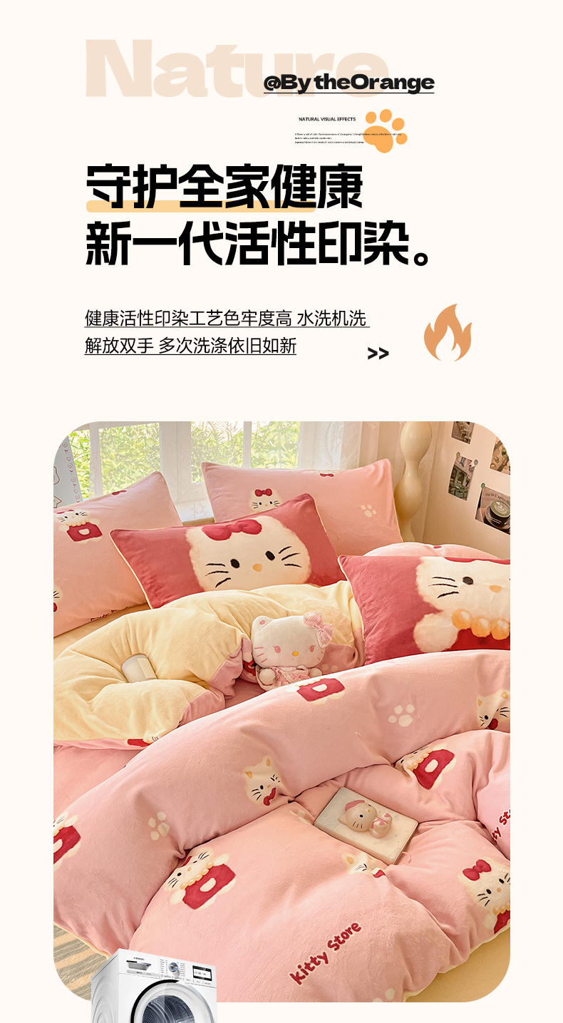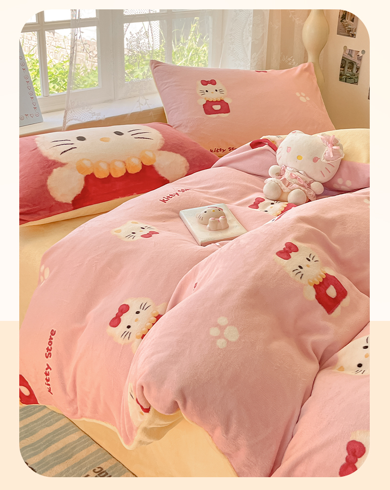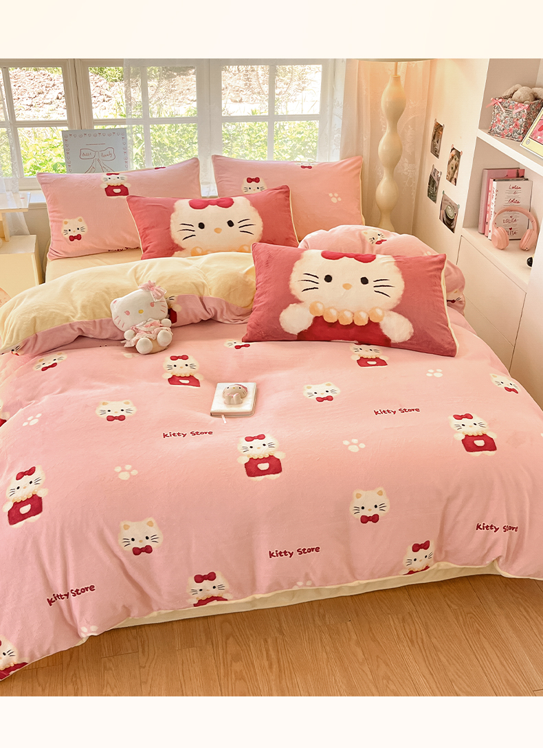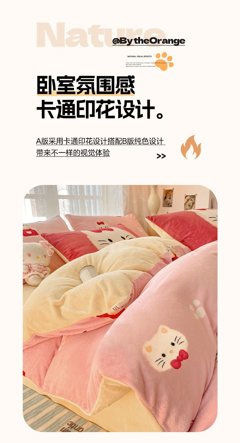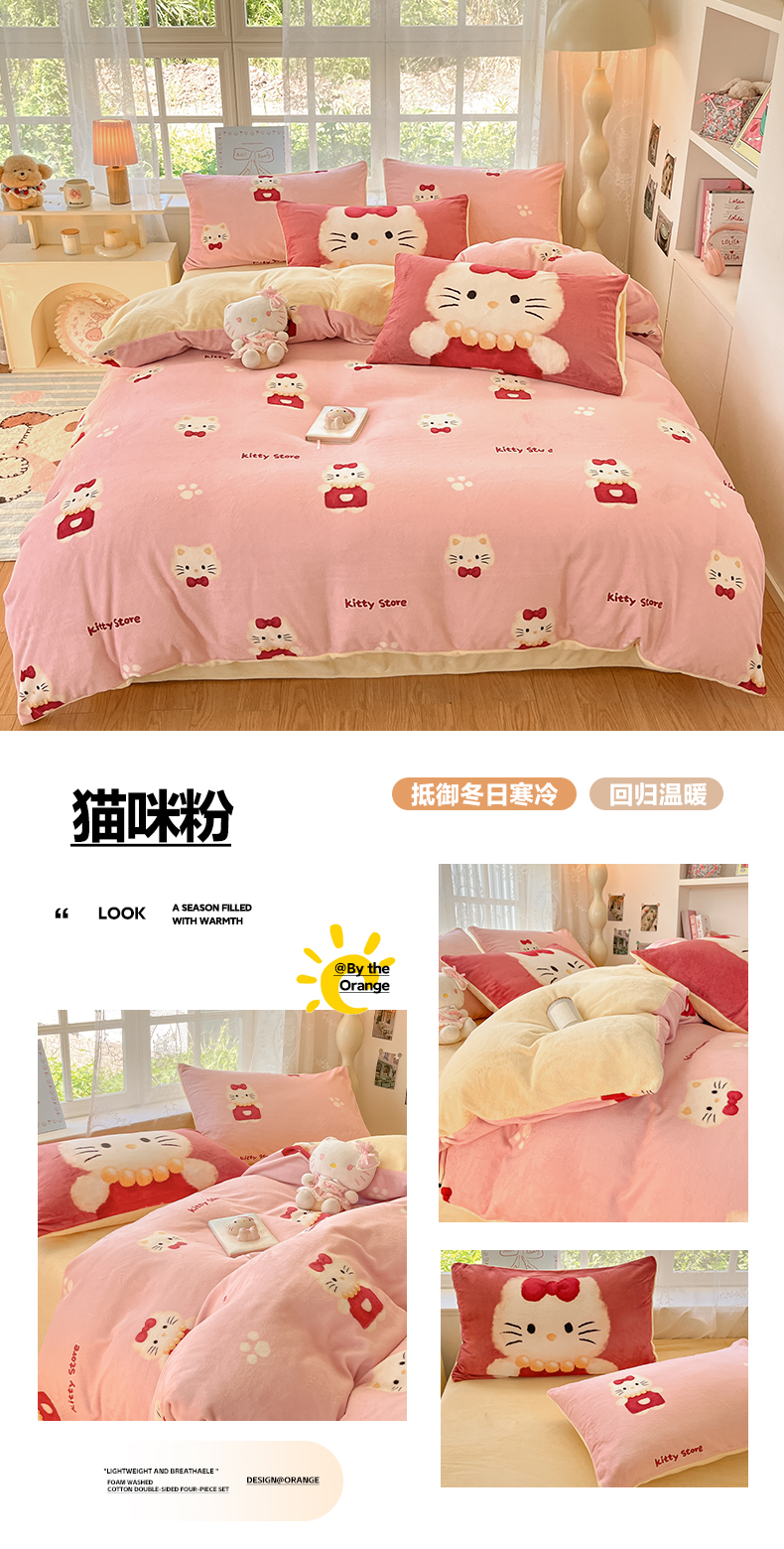 商品名称:如一 2025新款高克重卡通印花牛奶绒四件套第三批 猫咪粉