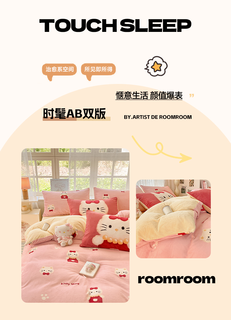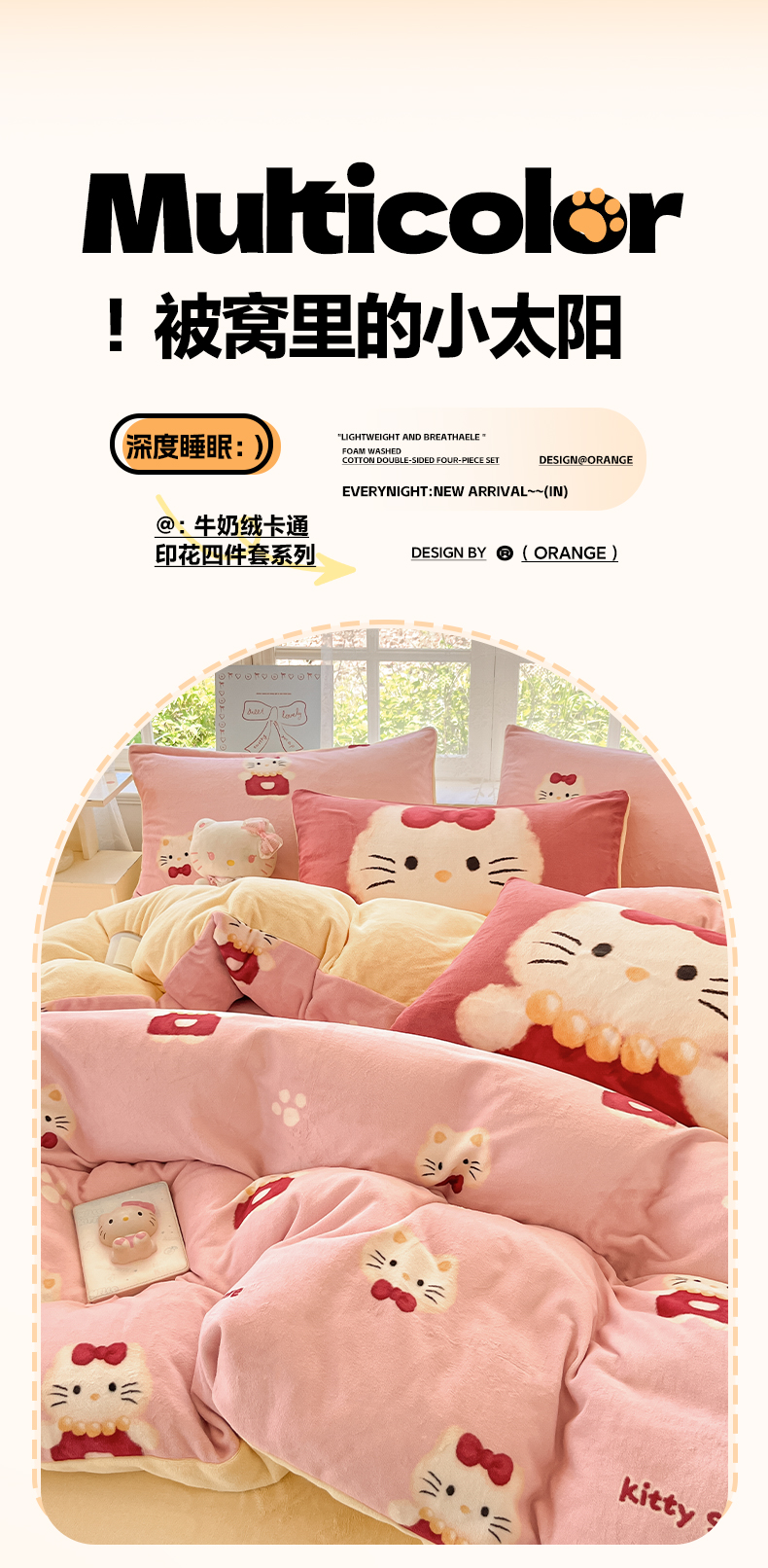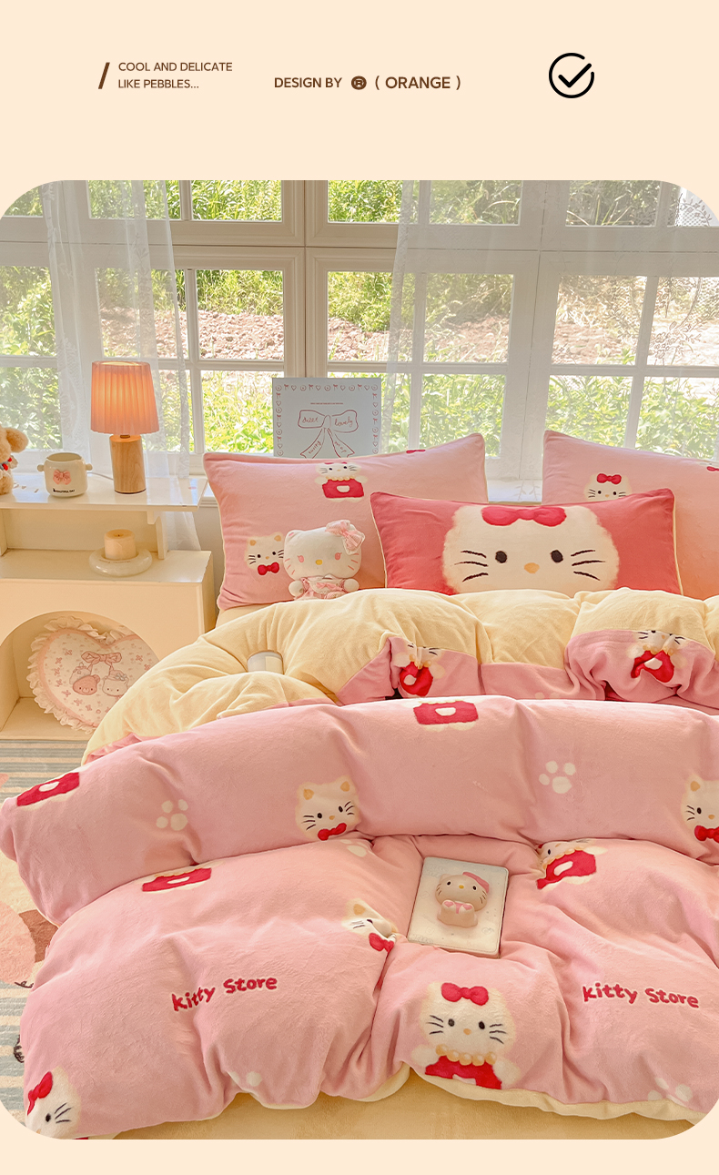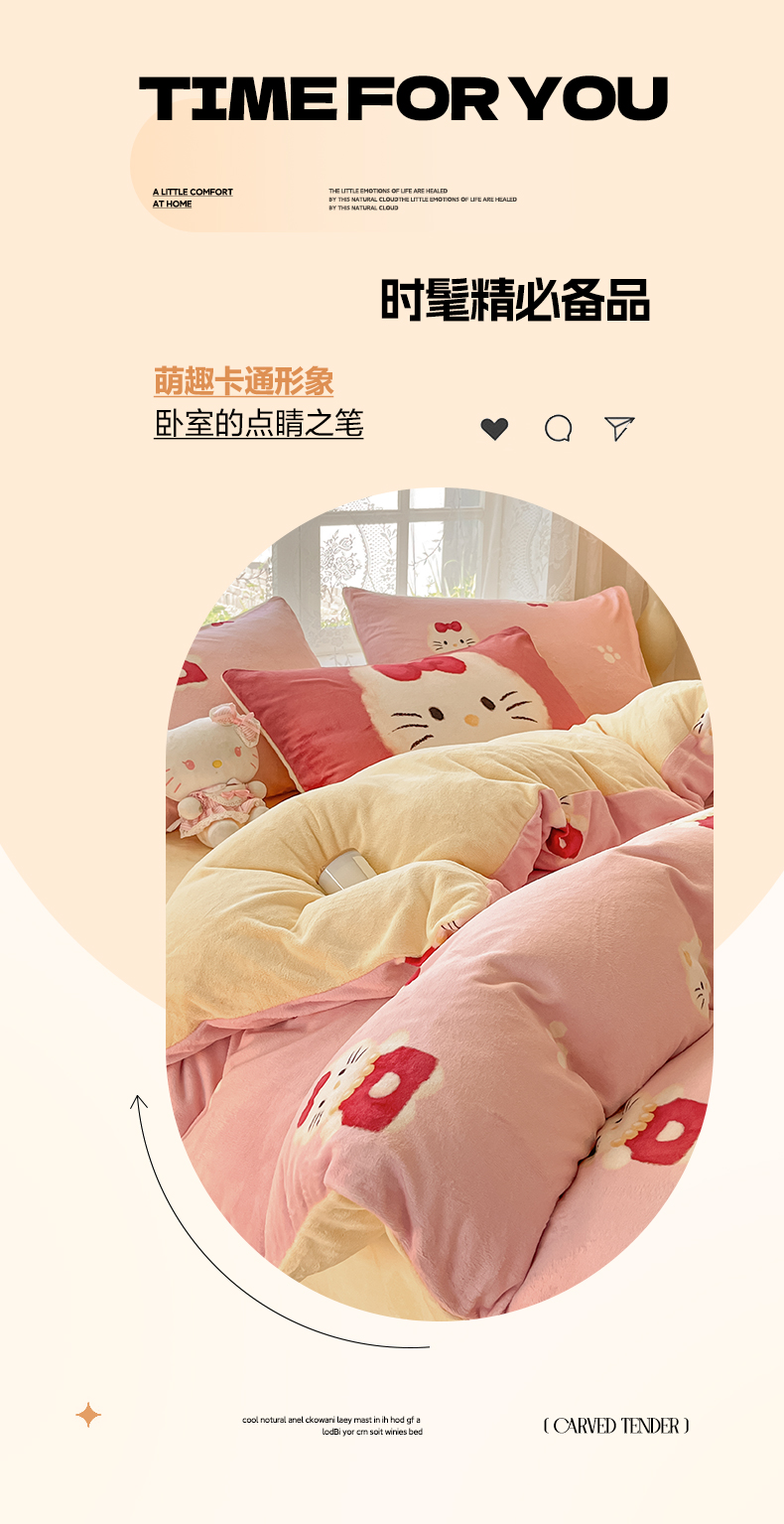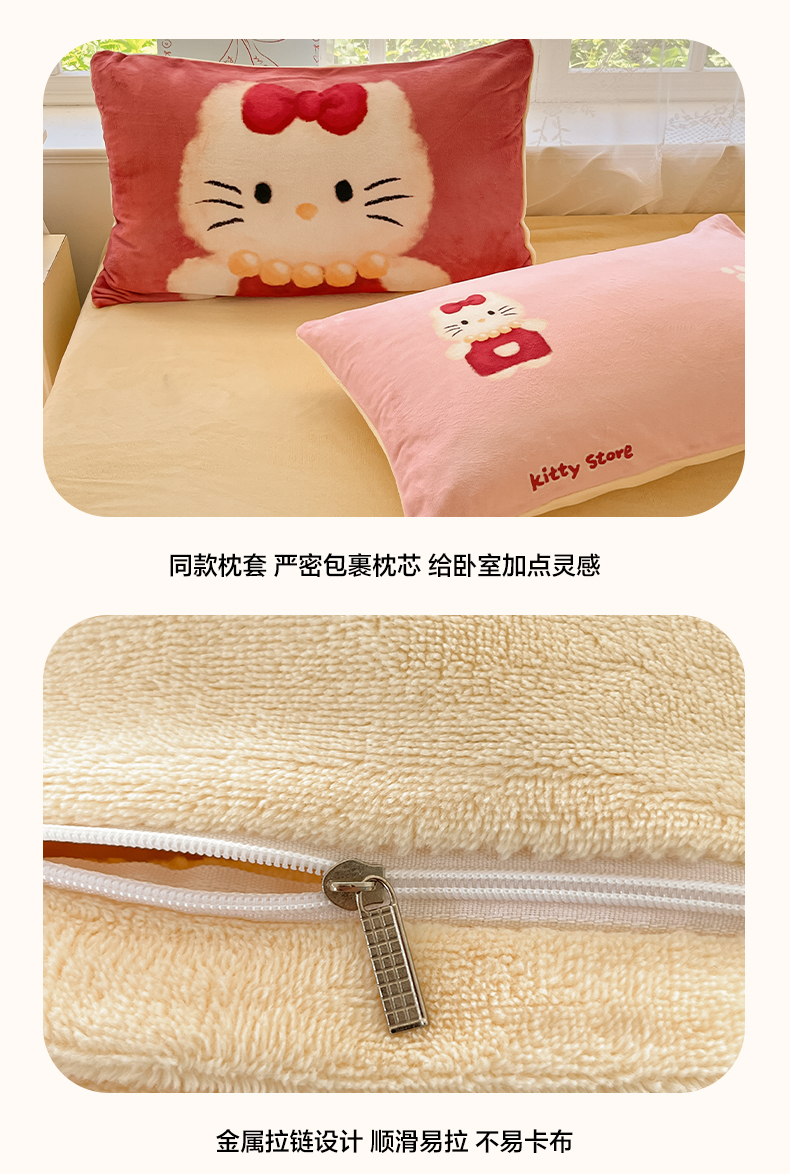 商品名称:如一 2025新款高克重卡通印花牛奶绒四件套第三批 猫咪粉
