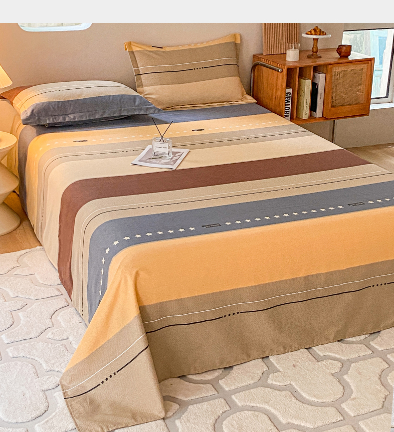小叮当家纺仓储工厂店 2025新款(买家秀 不断货)A类全棉纯棉磨毛单床单 床单单件 条纹星星-黄