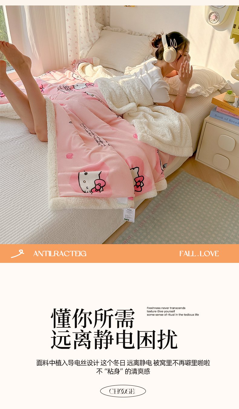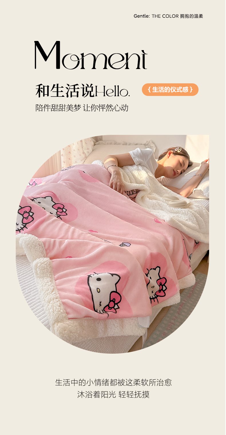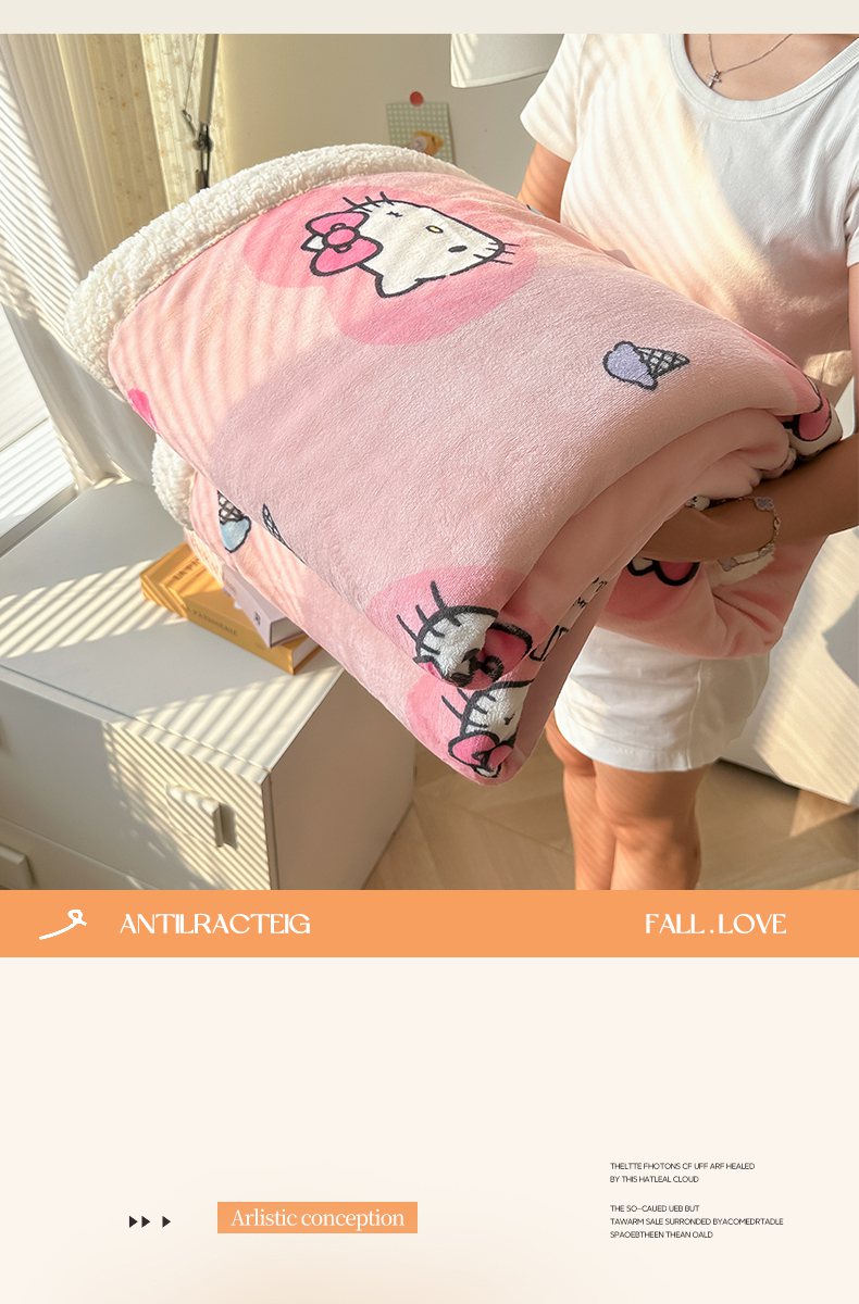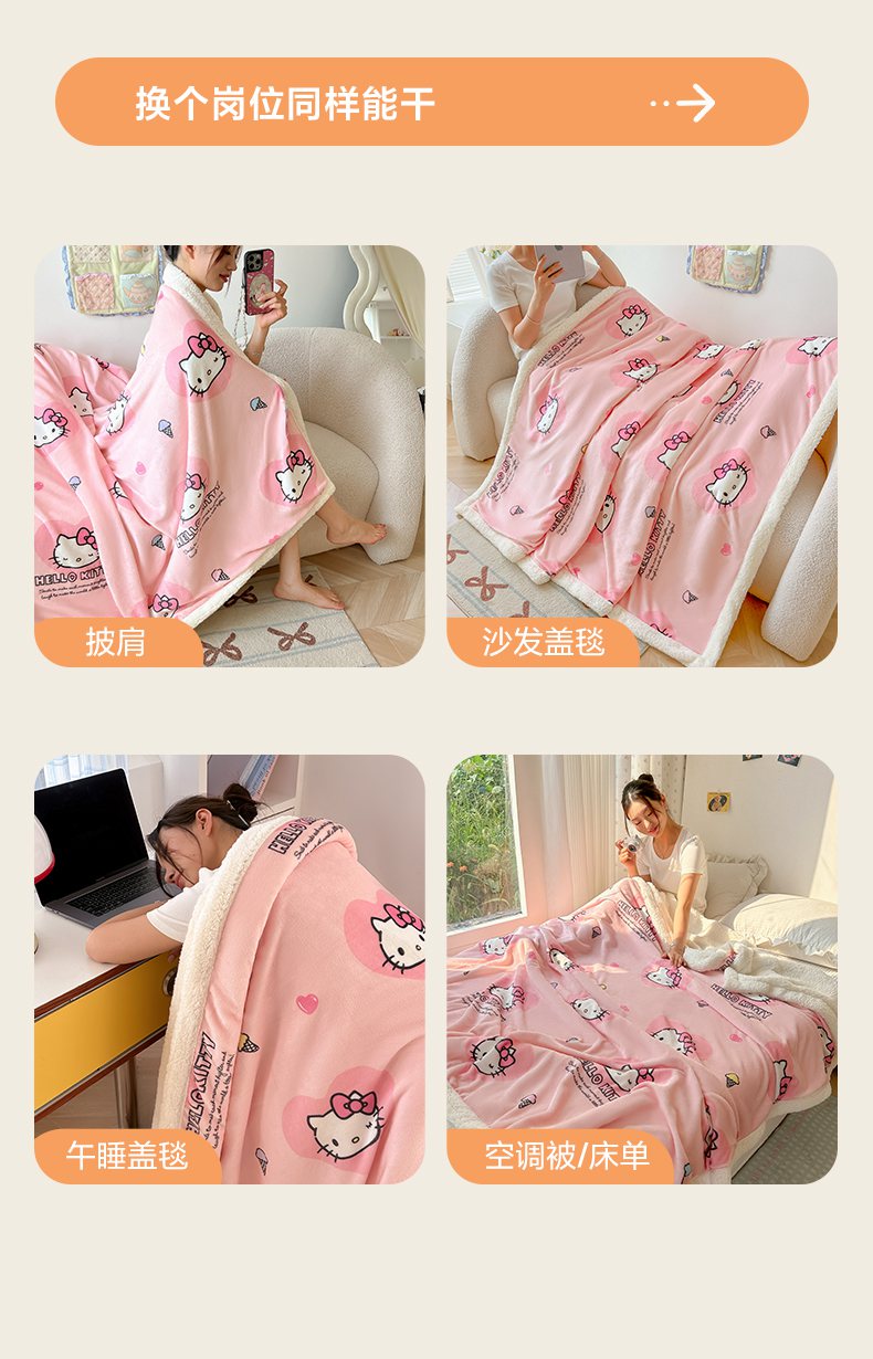 韩巢家纺 2025秋冬新款A类牛奶绒羊羔绒多功能毛毯毯子 困困凯蒂