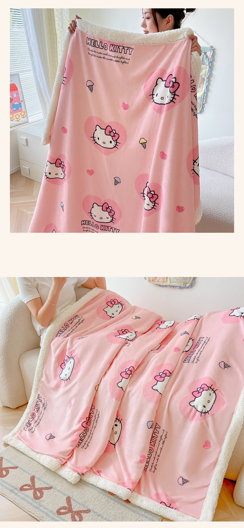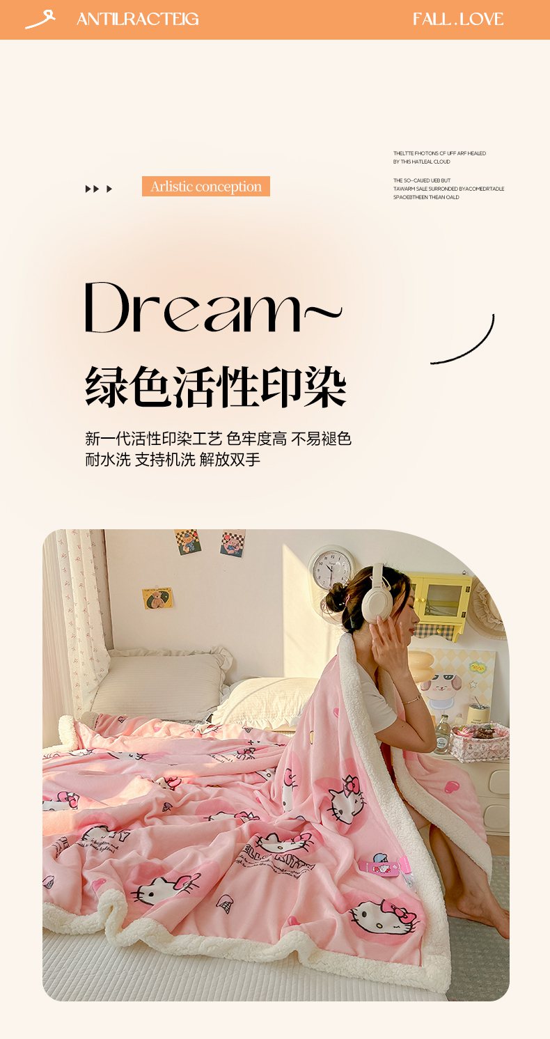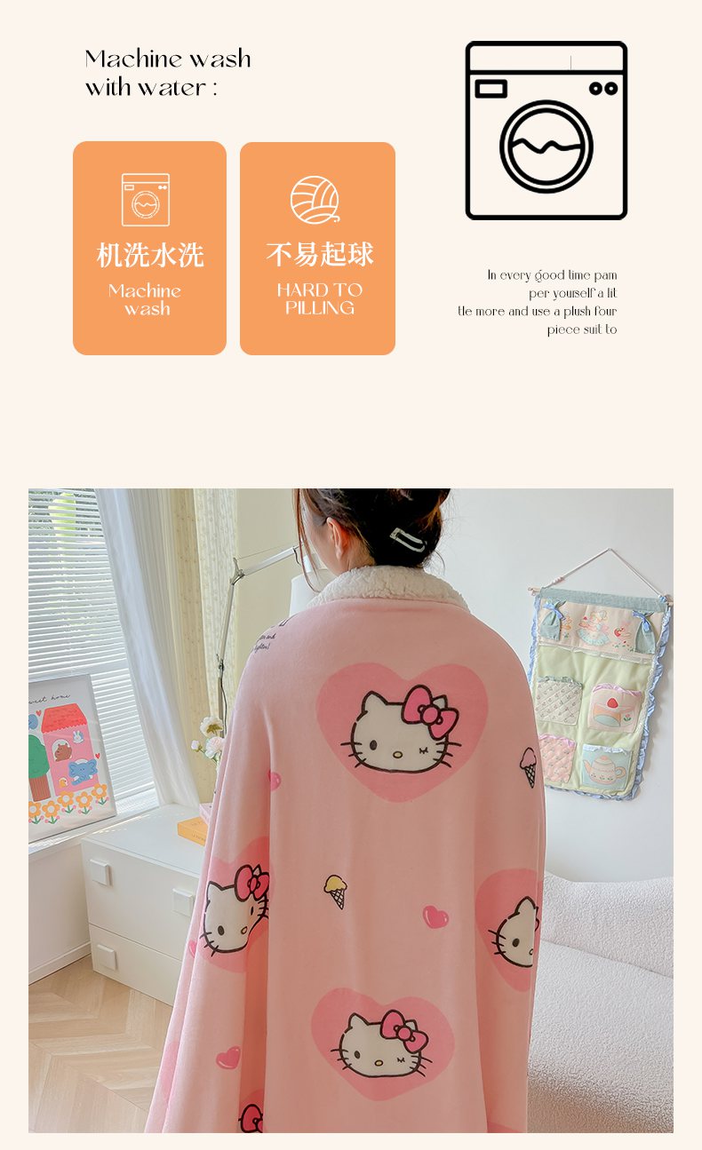 韩巢家纺 2025秋冬新款A类牛奶绒羊羔绒多功能毛毯毯子 困困凯蒂
