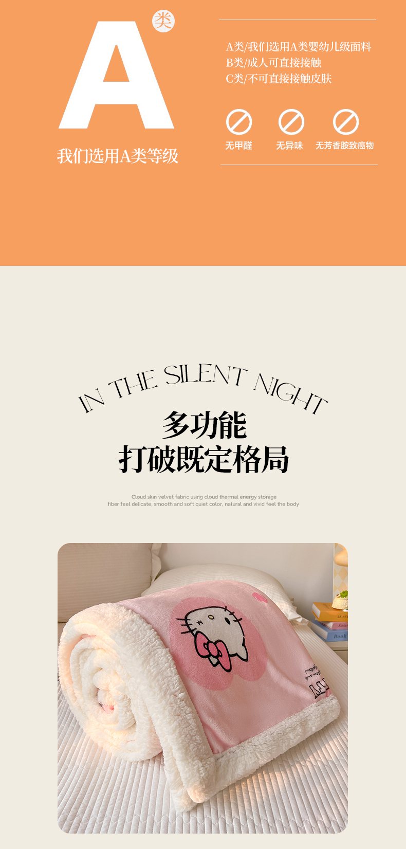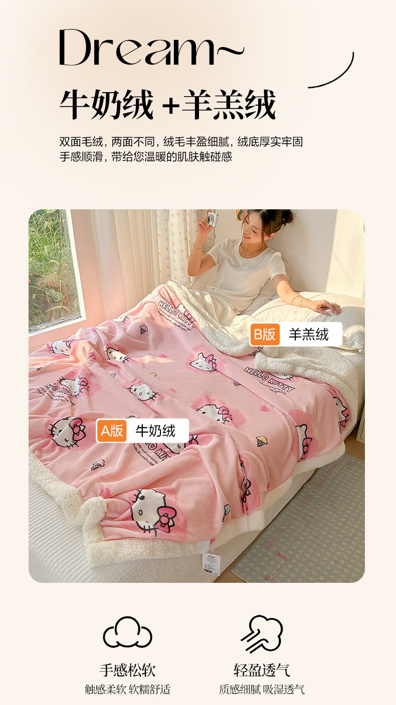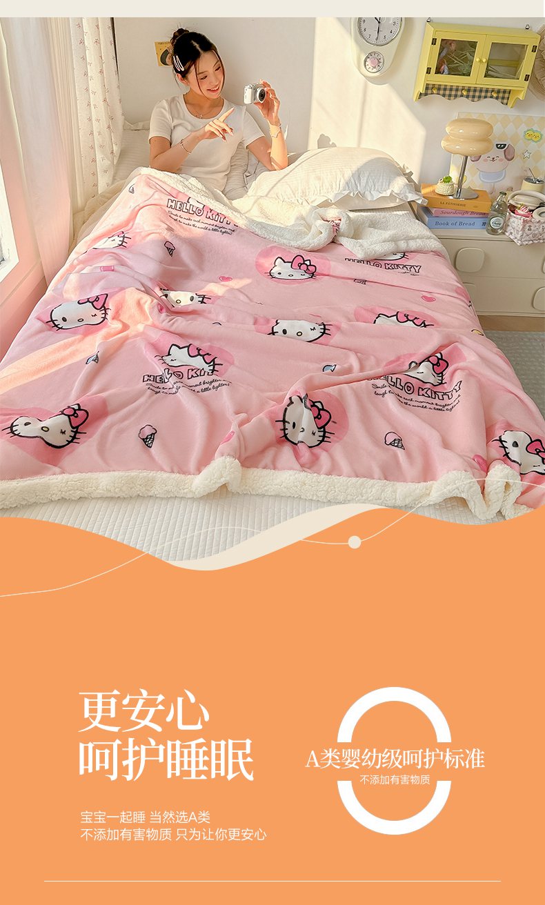 商品名称:韩巢家纺 2025秋冬新款A类牛奶绒羊羔绒多功能毛毯毯子 困困凯蒂