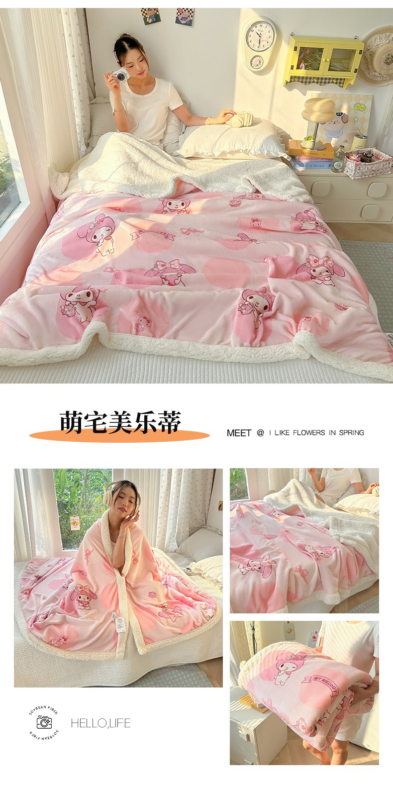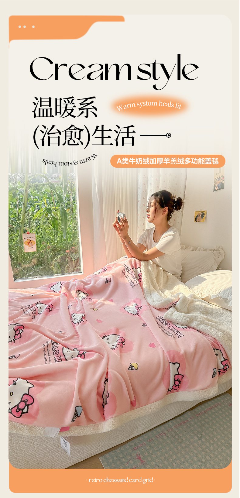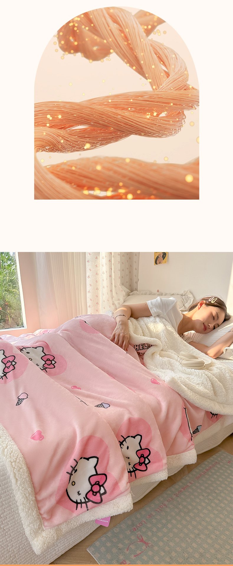 商品名称:韩巢家纺 2025秋冬新款A类牛奶绒羊羔绒多功能毛毯毯子 困困凯蒂