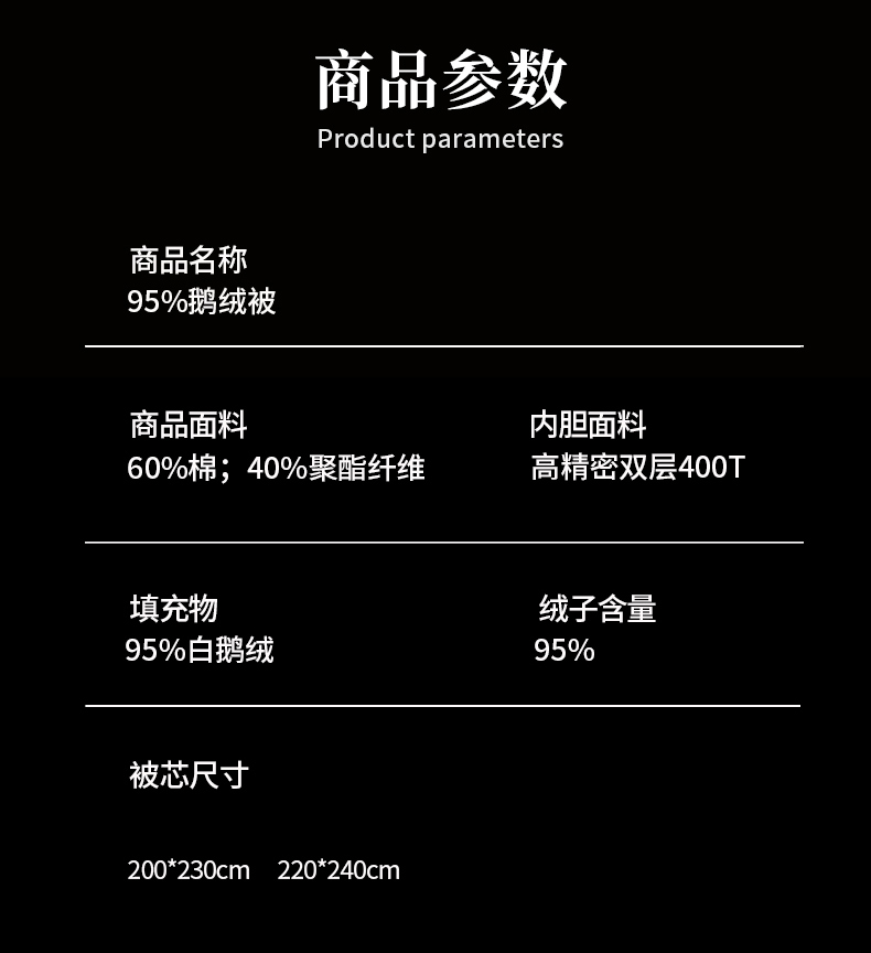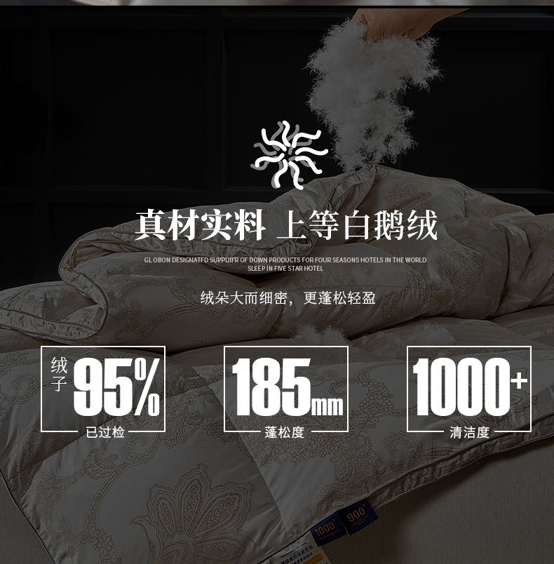 200-230 填充1100克95白鹅绒 秋冬被
