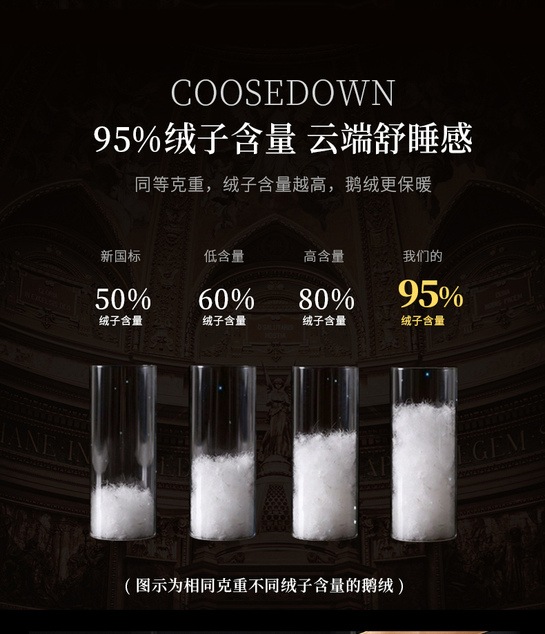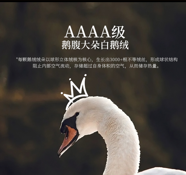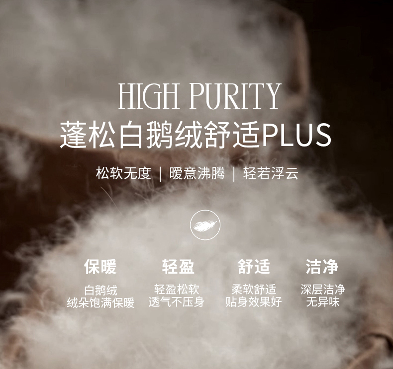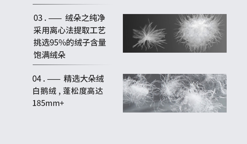 • 羽绒羽毛种类: 白鹅绒