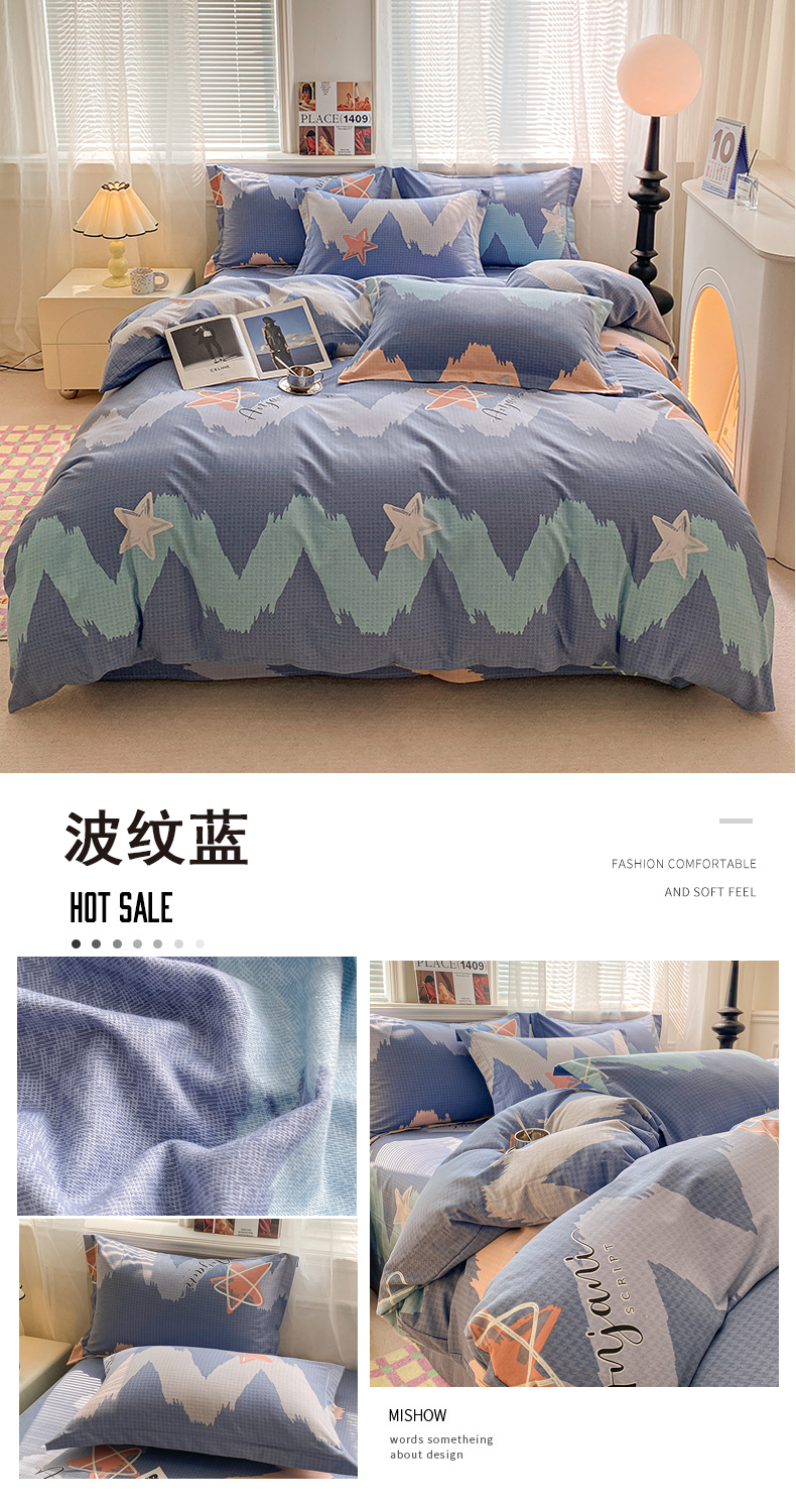 当前位置: 91家纺网 > 商品网购 > 床品套件 > 四件套 > 全棉普通四件套 > 小叮当家纺仓储工厂店 2025新款(买家秀 不断货)A类全棉纯棉磨毛四件套 波纹蓝