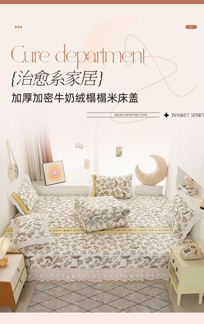 • 91家纺网 家纺一手货源 找家纺 (总)冬然家纺 2025新款高克重牛奶绒蕾丝花边床盖系列,水墨茶花,朵朵花香,肌理纹-灰,肌理纹-咖,经典条纹,卡皮巴拉,可可西里,楼兰花海,奶油布丁,幸运点点