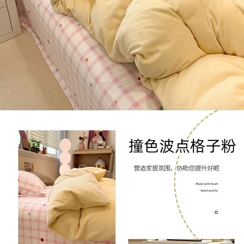 当前位置: 91家纺网 > 商品网购 > 床品套件 > 四件套 > 牛奶绒四件套 > 呗旺鹿 2025新款亲肤舒适ins韩系撞色小清新牛奶绒四件套 芝士草莓点点-枕套咖+咖