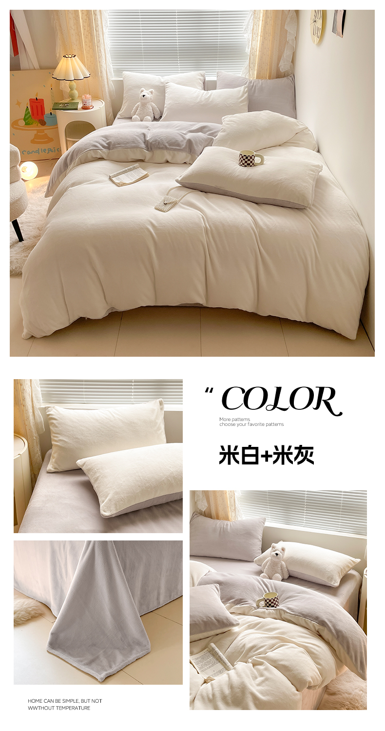 小叮当家纺仓储工厂店 2025新款纯色双拼牛奶绒四件套190克 卡尔-奶黄+浅紫