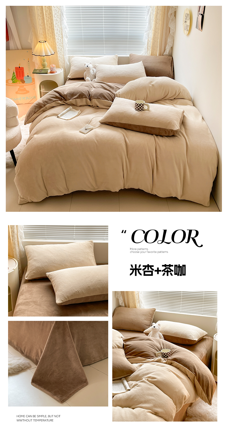 小叮当家纺仓储工厂店 2025新款纯色双拼牛奶绒四件套190克 卡尔-芽绿