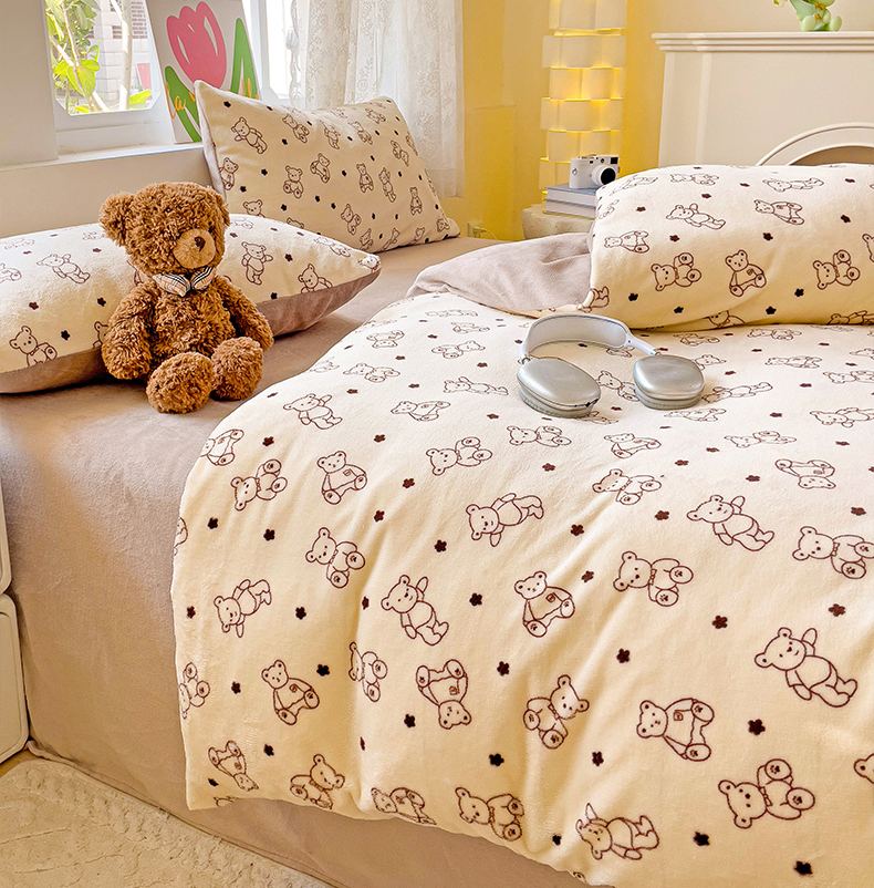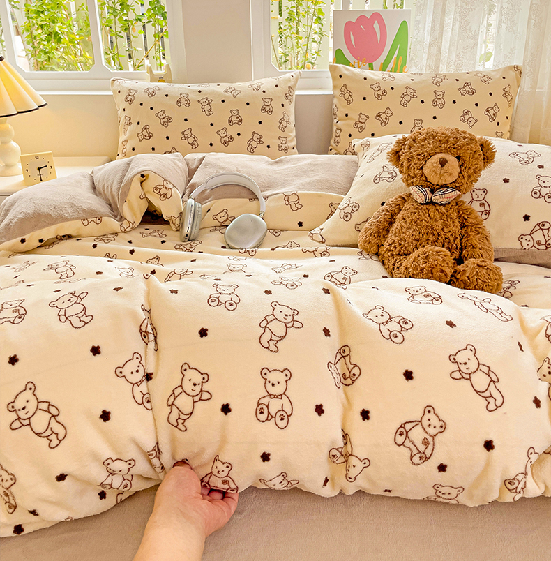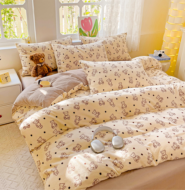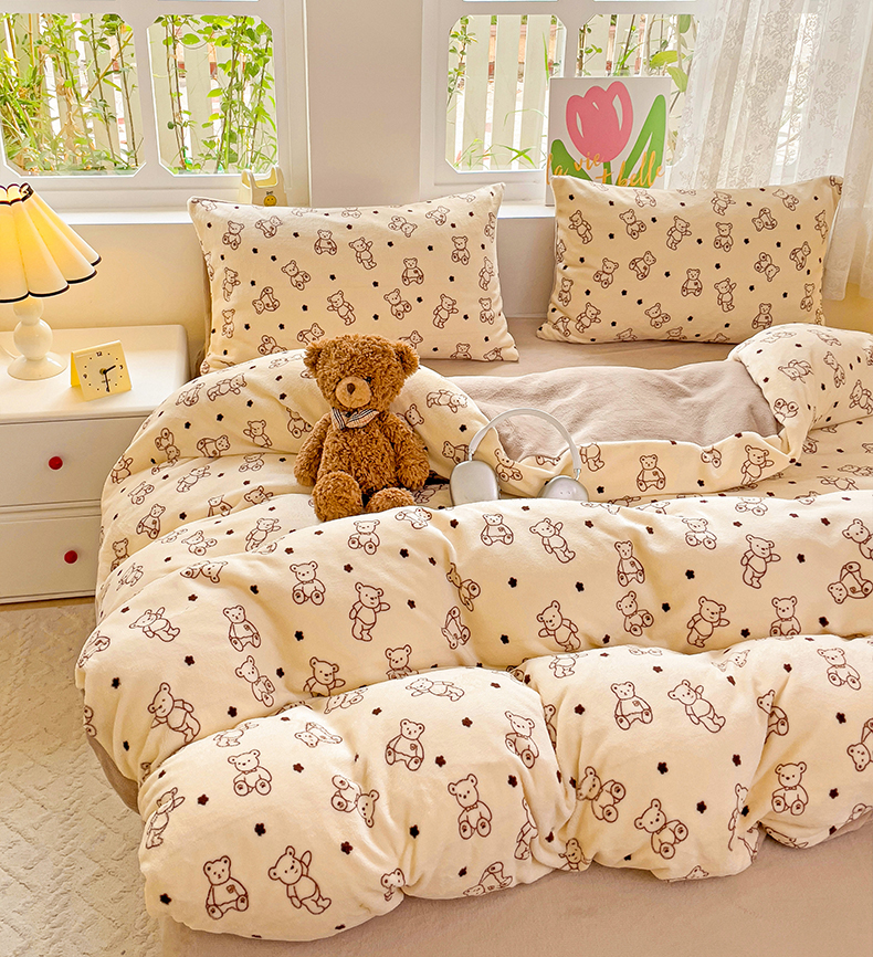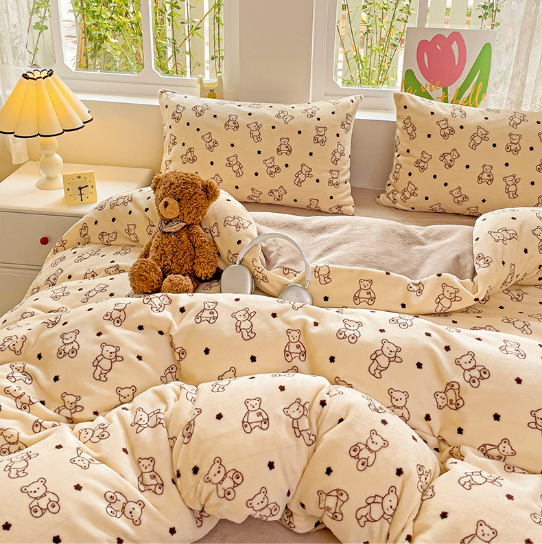 当前位置: 91家纺网 > 商品网购 > 床品套件 > 四件套 > 牛奶绒四件套 > 暖芯优选 2025新款小清新加厚高克重牛奶绒四件套直播热款电商热款 小熊世界