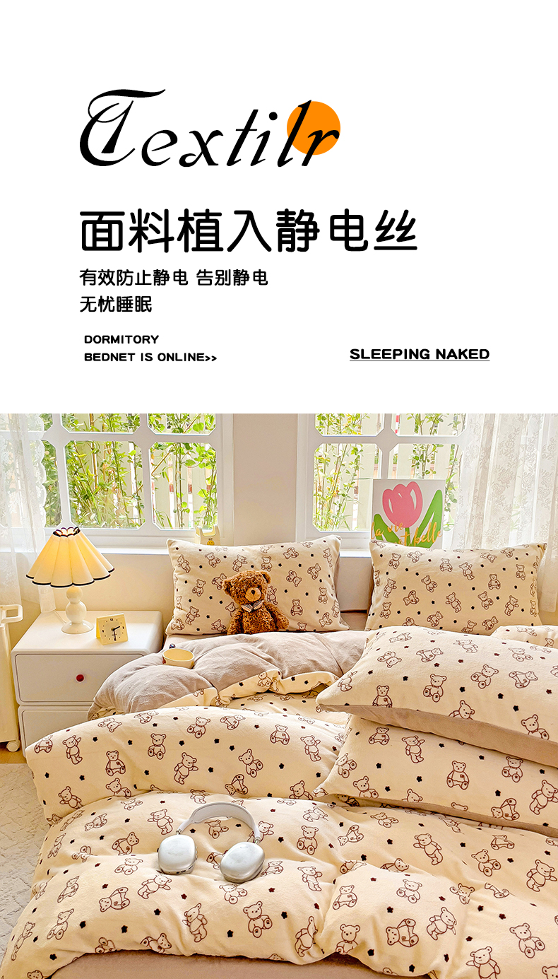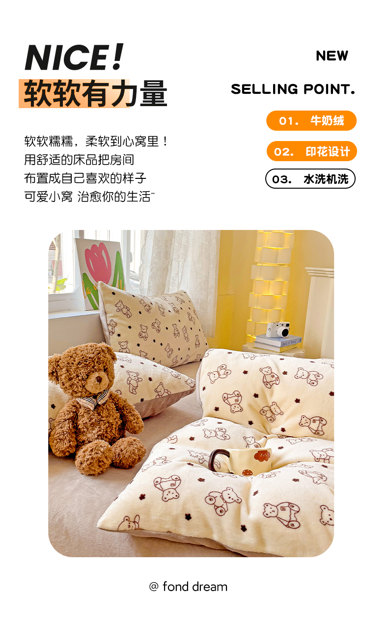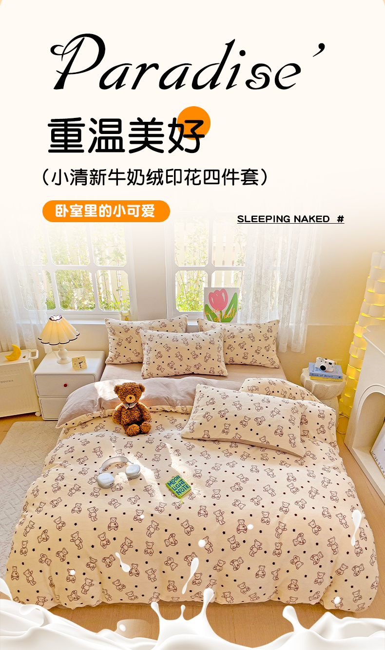 当前位置: 91家纺网 > 商品网购 > 床品套件 > 四件套 > 牛奶绒四件套 > 暖芯优选 2025新款小清新加厚高克重牛奶绒四件套直播热款电商热款 小熊世界