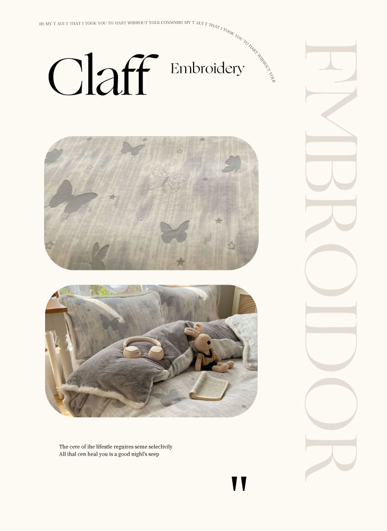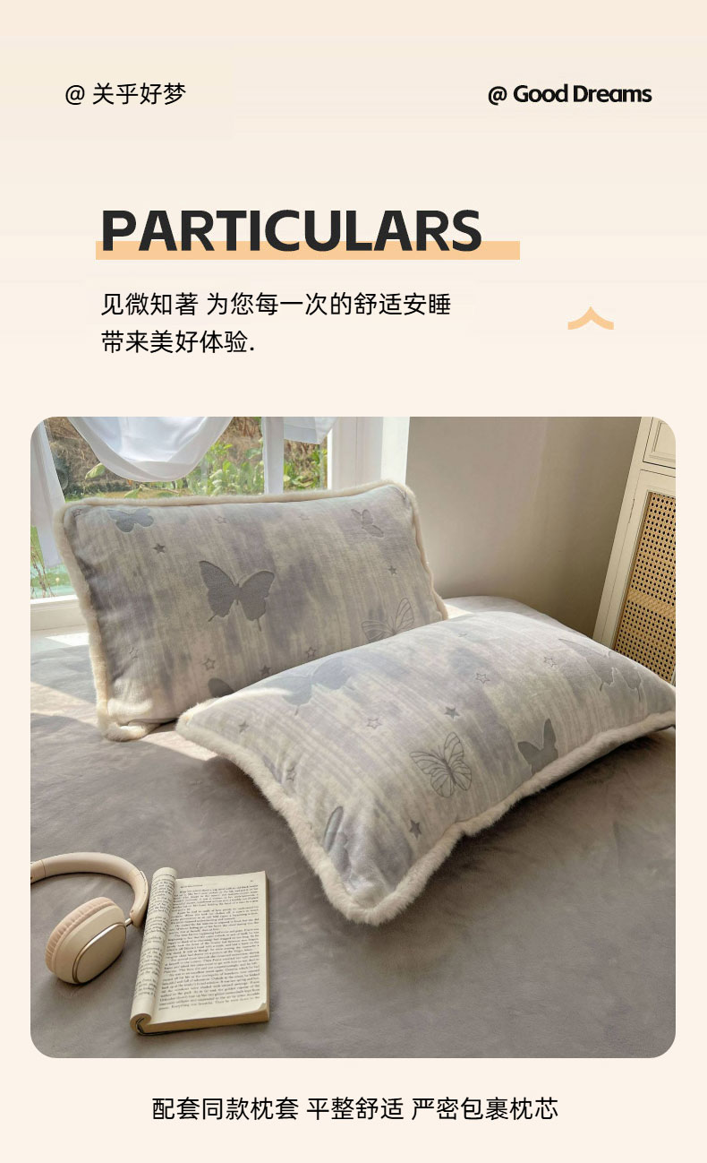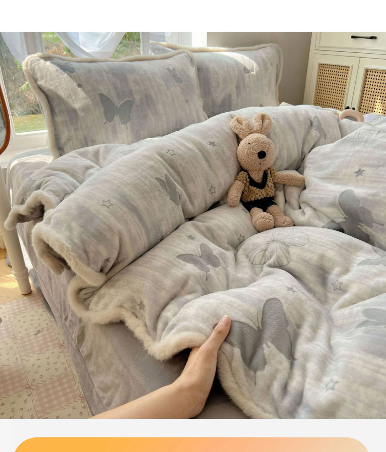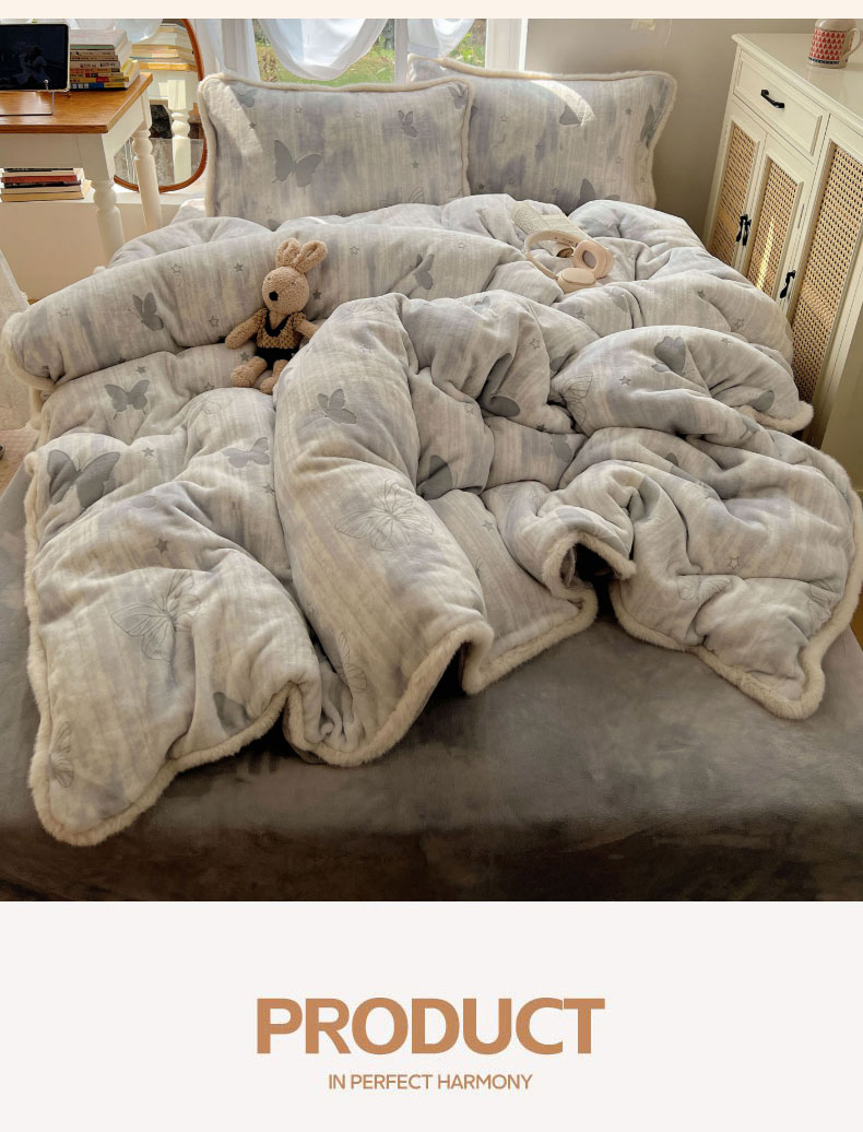 商品名称:十里居 2025新款兔毛条花边款雕花牛奶绒四件套 蝶舞灰