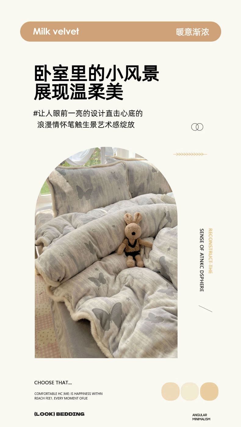 (总)十里居 2025新款兔毛印花法式轻奢系列牛奶绒四件套,豹纹蝴蝶,蝶舞咖,法式白,花海,花影灰,玫瑰