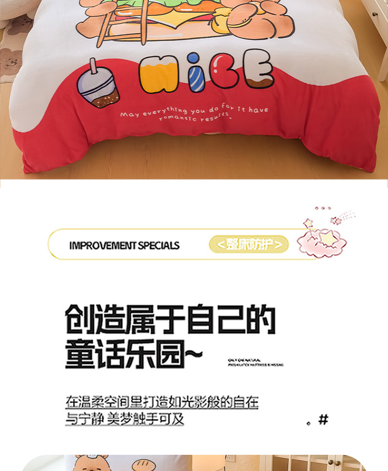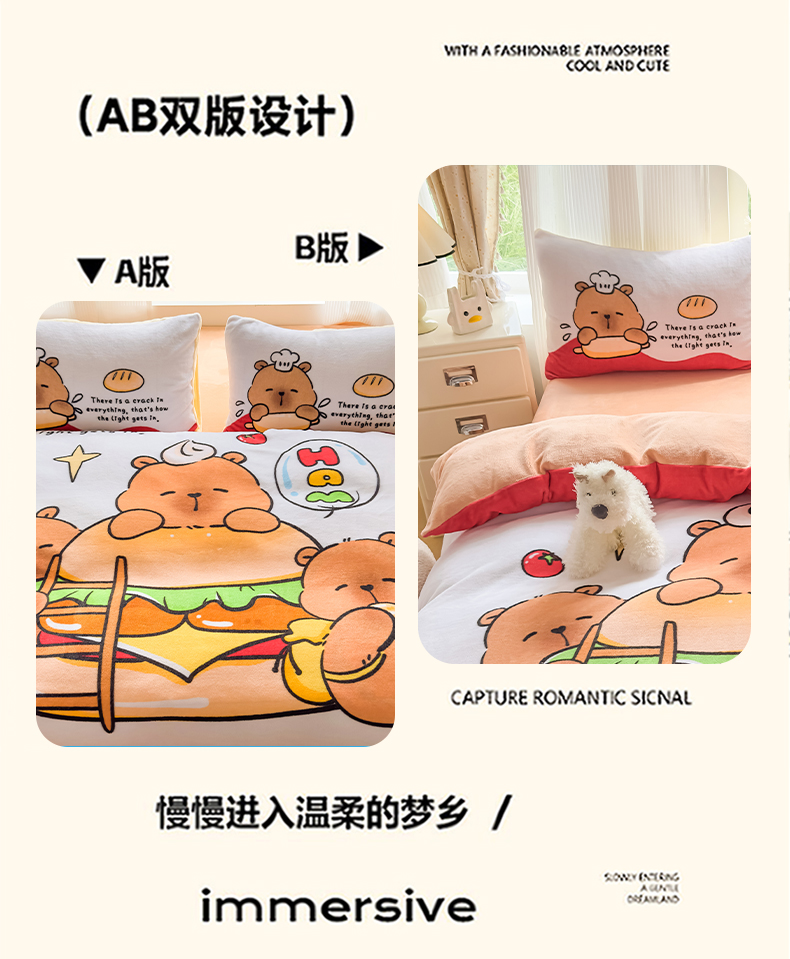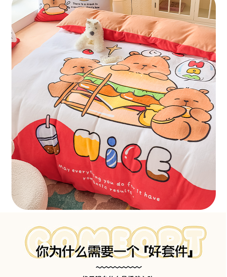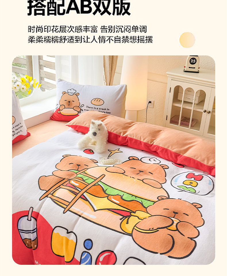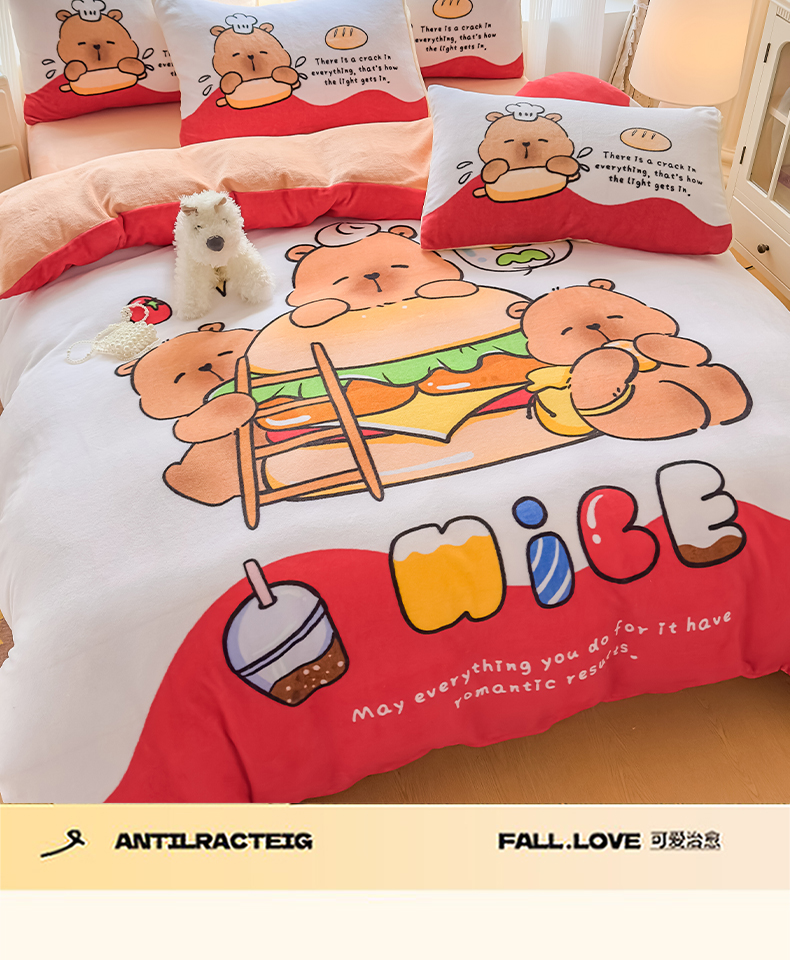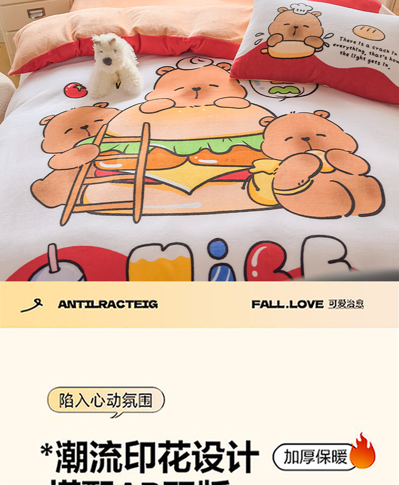 当前位置: 91家纺网 > 商品网购 > 床品套件 > 四件套 > 牛奶绒四件套 > 浩诚 2025新款高克重原创设计牛奶绒大版卡通四件套第2批 汉堡巴拉