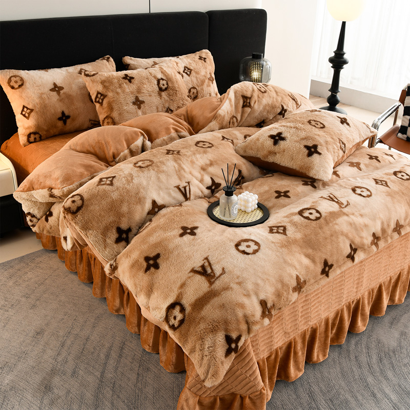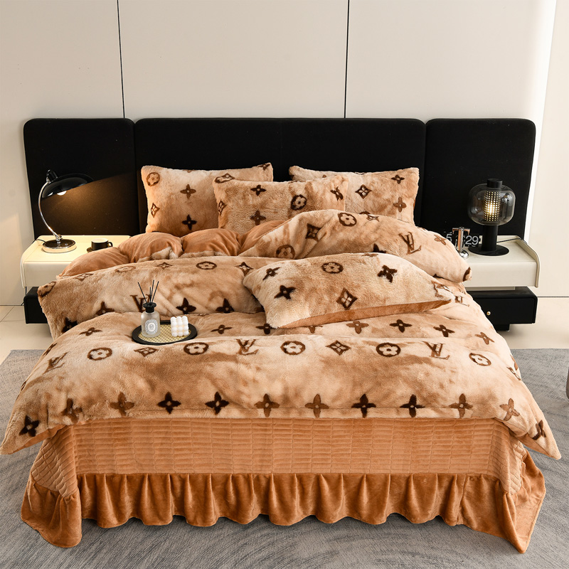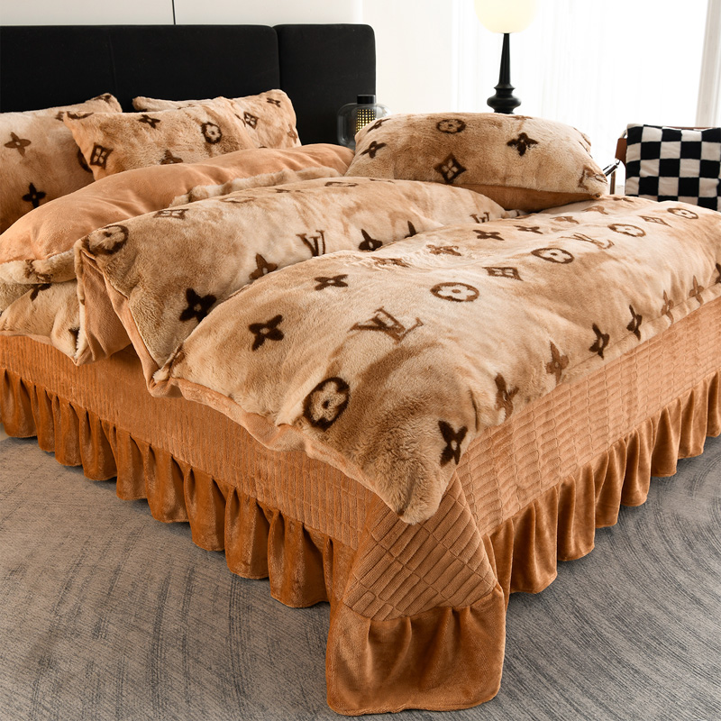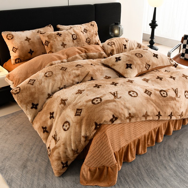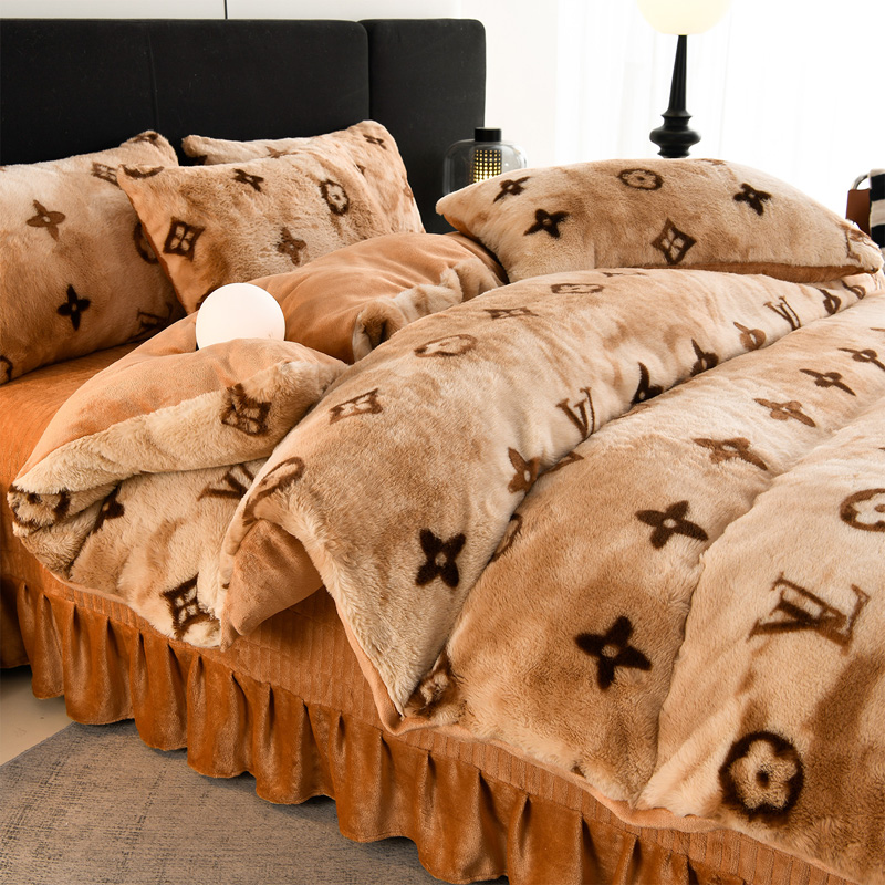 商品名称:德比尔斯 2025新款兔毛绒兔兔绒牛奶绒四件套床盖款 墨本