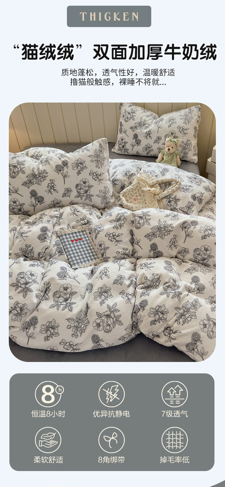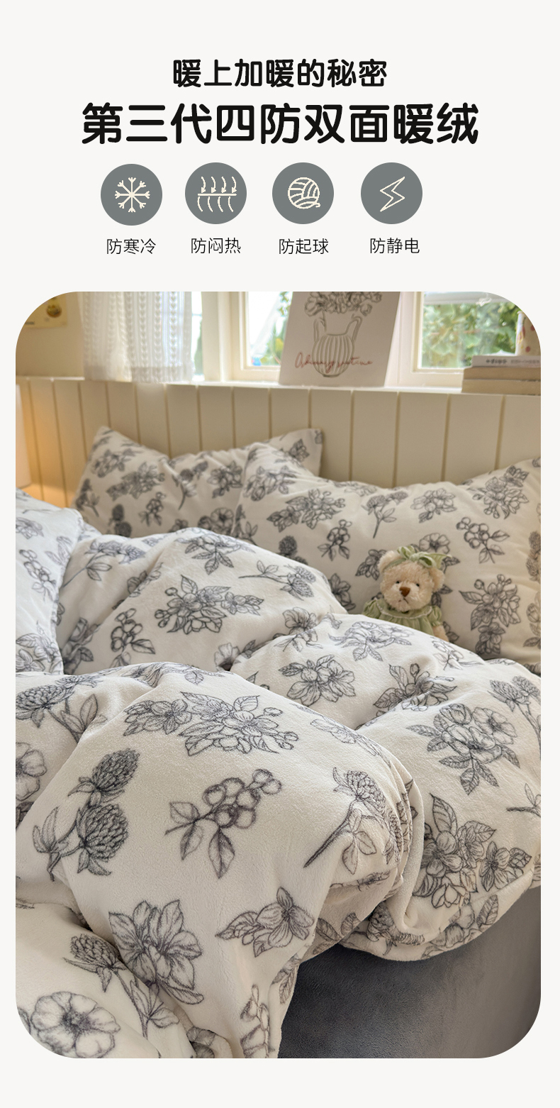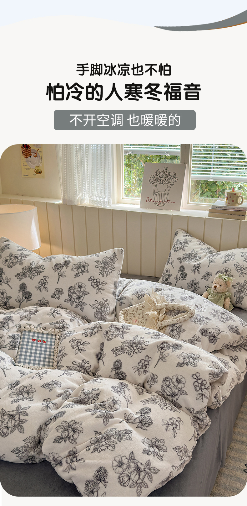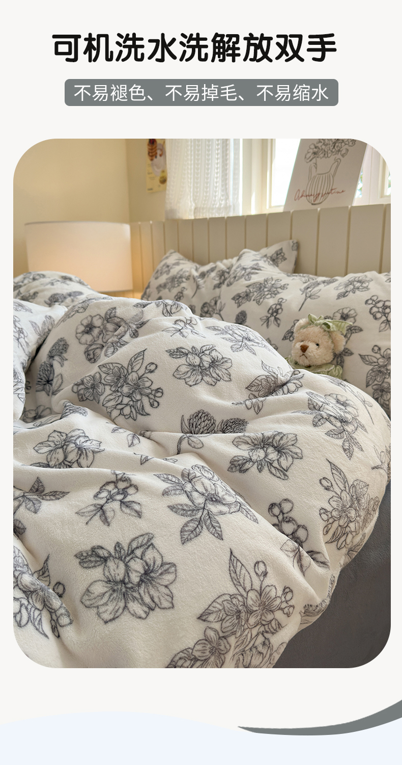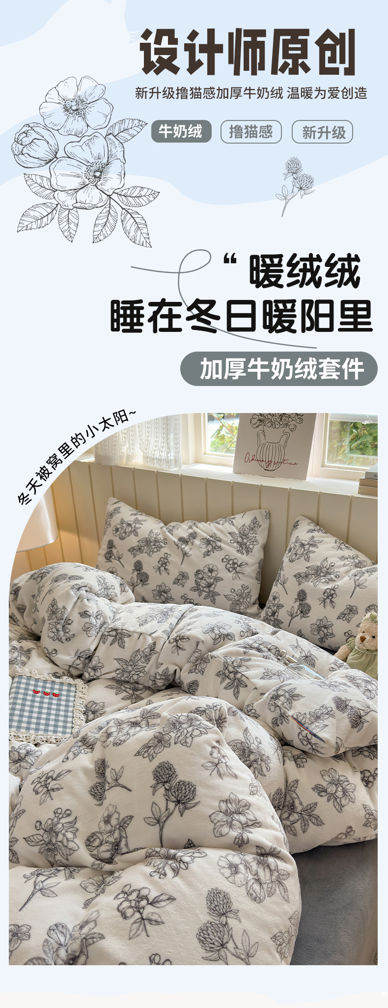 当前位置: 91家纺网 > 商品网购 > 床品套件 > 四件套 > 牛奶绒四件套 > 丽美人家纺 2025新款小版印花牛奶绒四件套 复古山茶