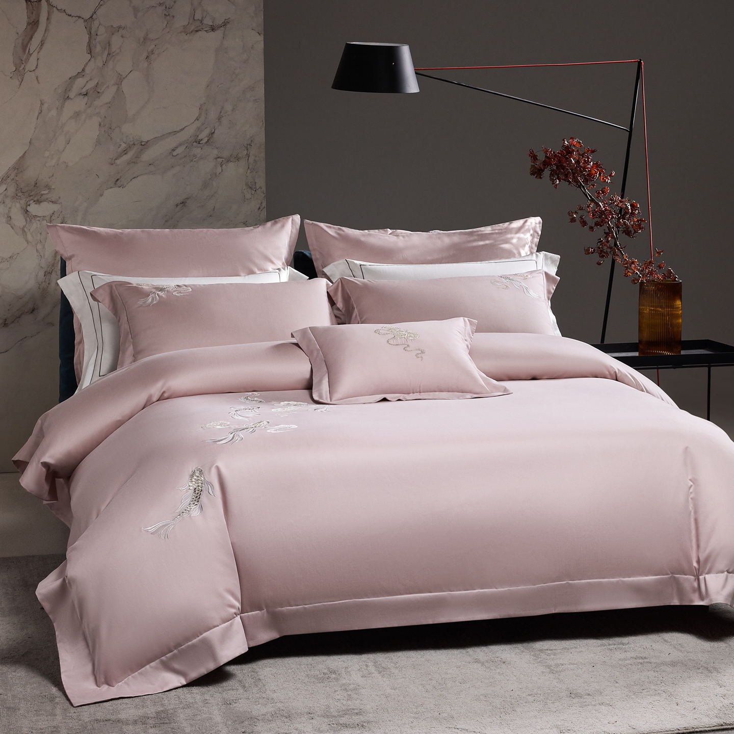 淼铭家纺 2025秋冬新款新中式天丝棉磨毛刺绣工艺四件套-锦鲤系列 锦鲤-粉