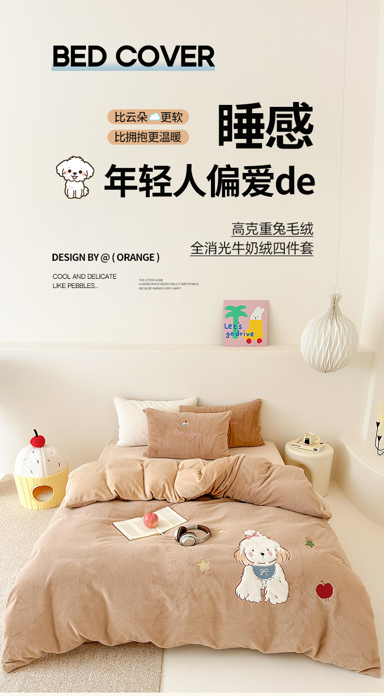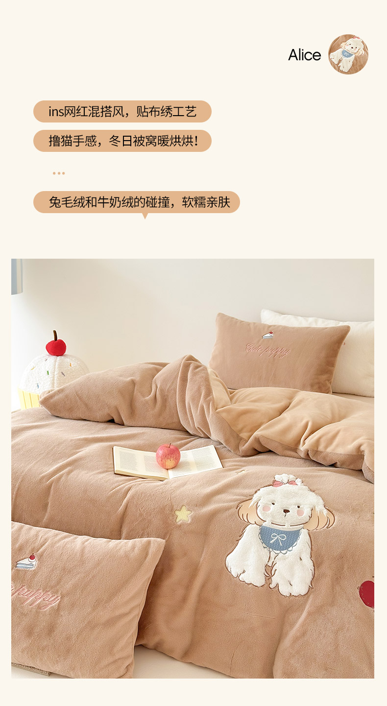 色鬼布艺高端家居主号 2025新款兔毛绒牛奶绒四件套系列 美拉德狗狗