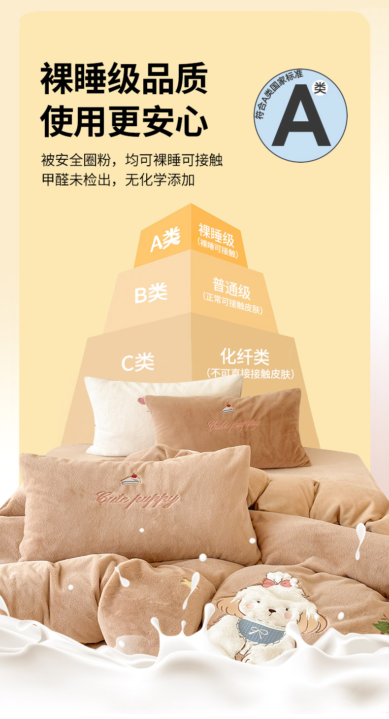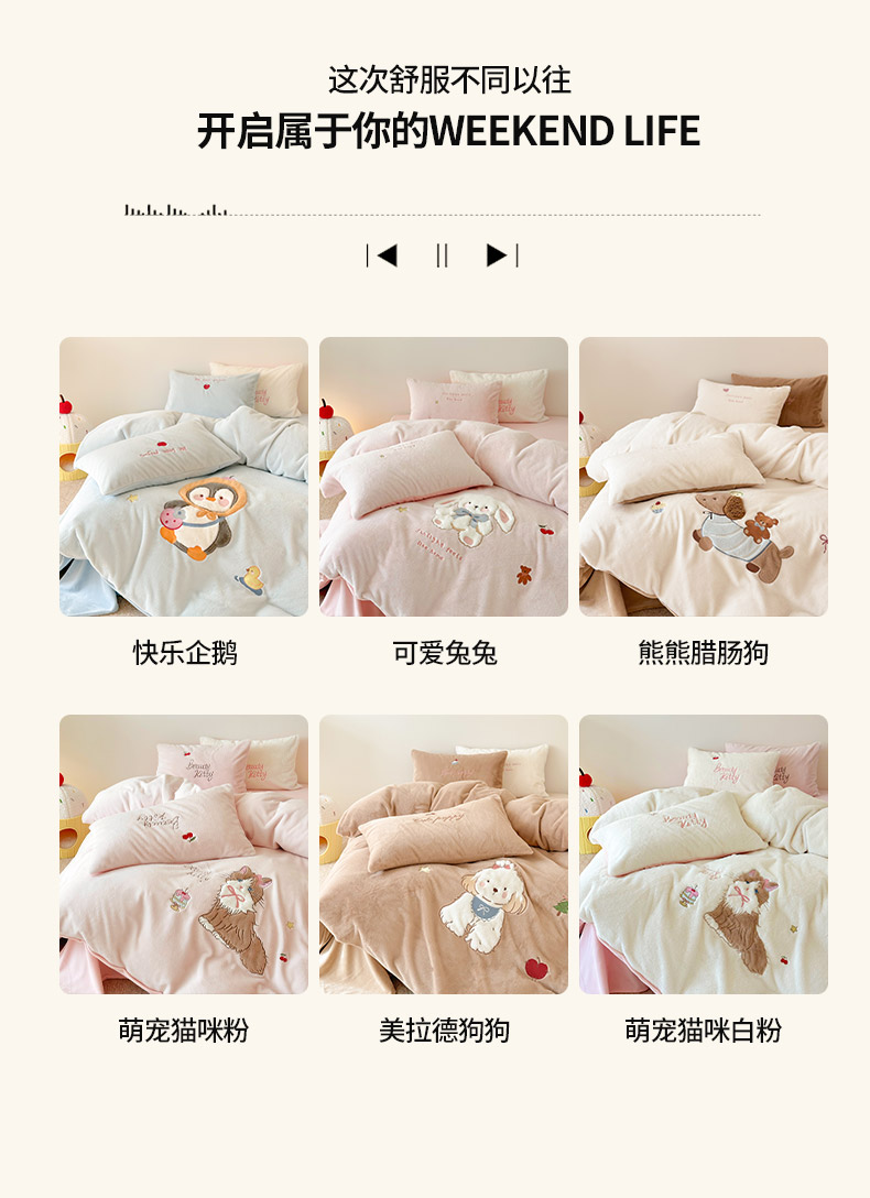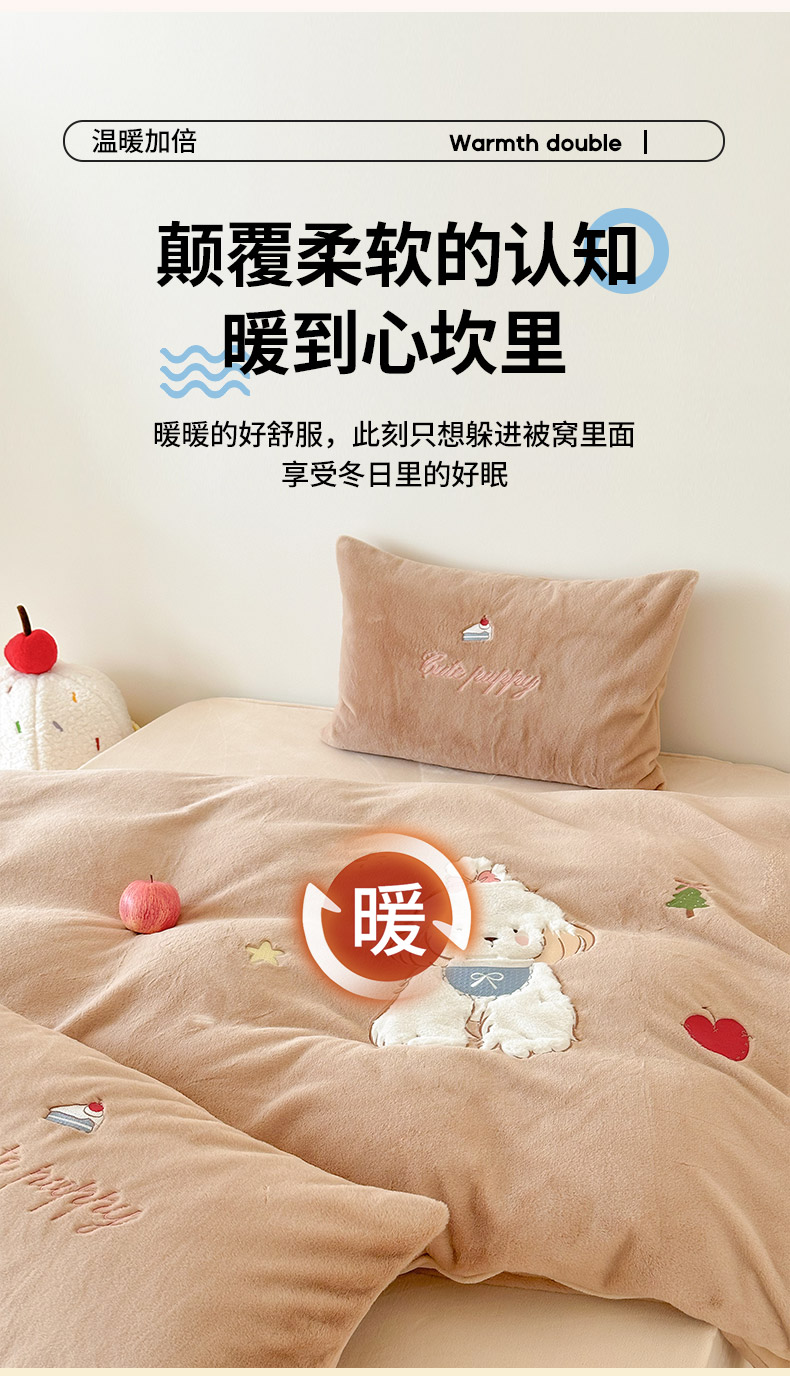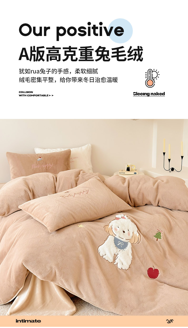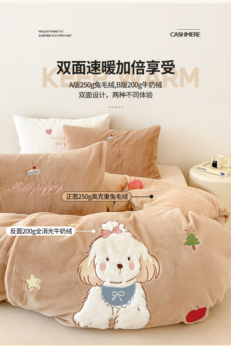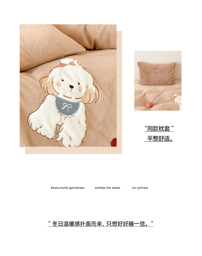 商品名称:色鬼布艺高端家居主号 2025新款兔毛绒牛奶绒四件套系列 美拉德狗狗