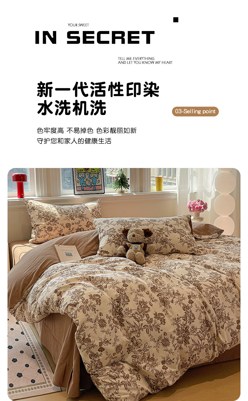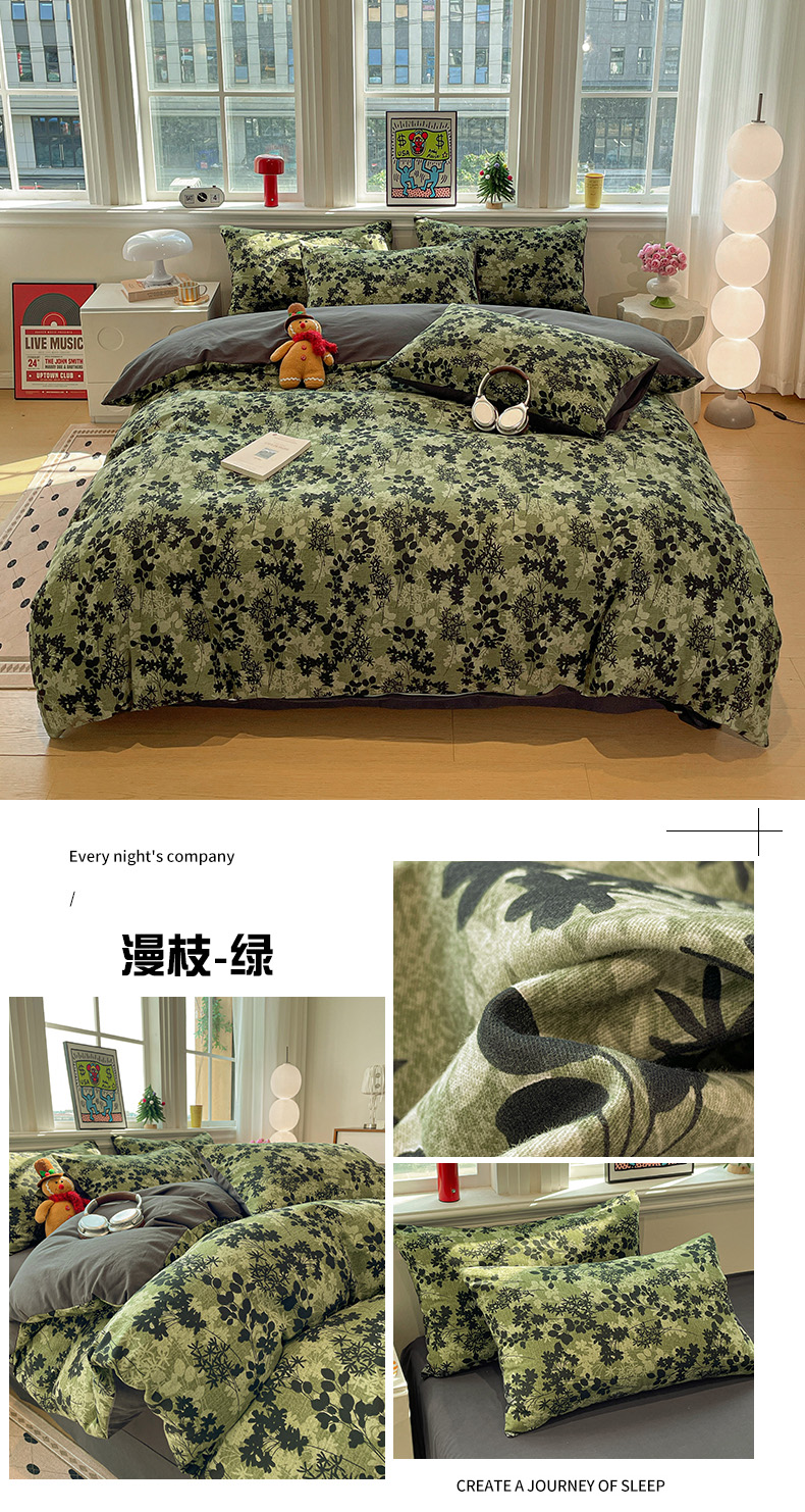 (总)忆生活 2025新款秋冬复古风全棉加厚磨毛四件套,简秋-咖,花汐,花颜-红,璃月-绿,漫枝-灰,漫枝-绿,骑士,芊墨,童年,玩伴,叶语,夜雨-咖