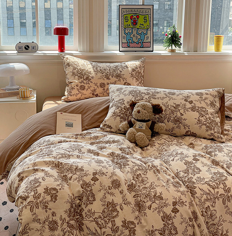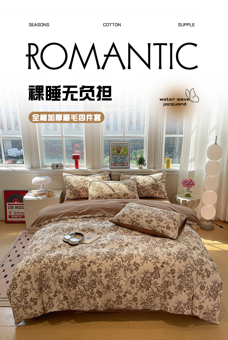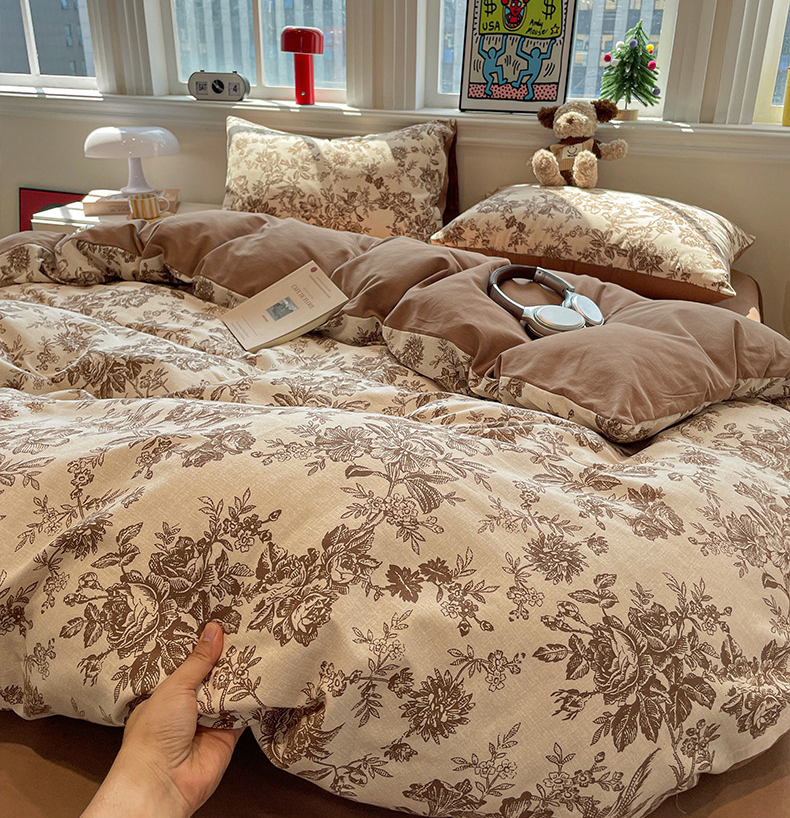 忆生活 2025新款秋冬复古风全棉加厚磨毛四件套 简秋-咖