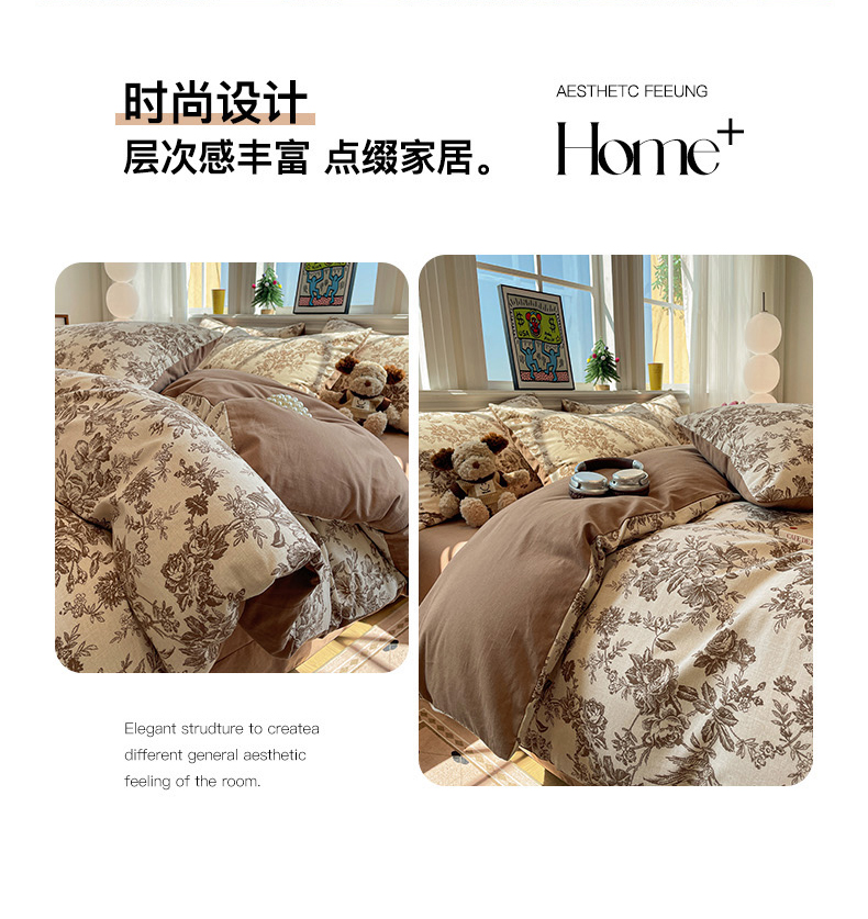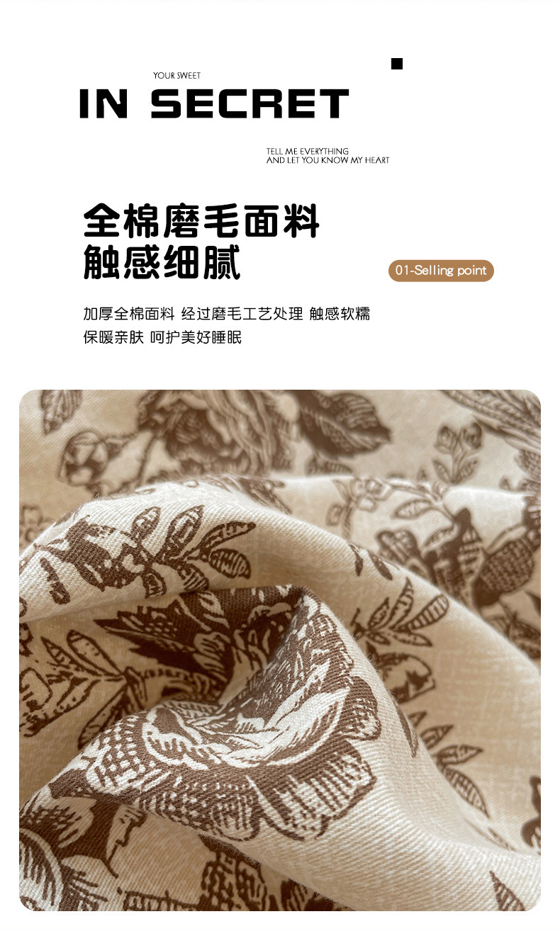 商品名称:忆生活 2025新款秋冬复古风全棉加厚磨毛四件套 简秋-咖