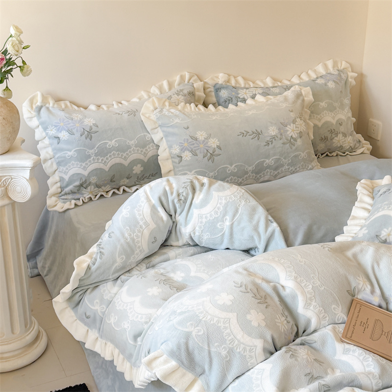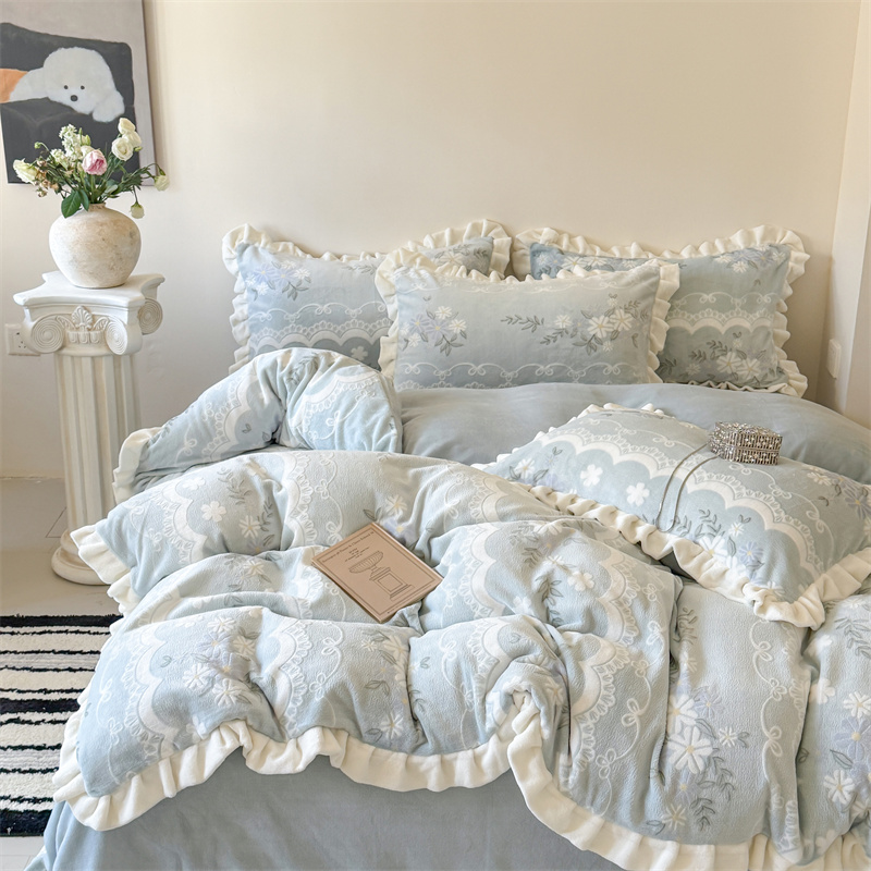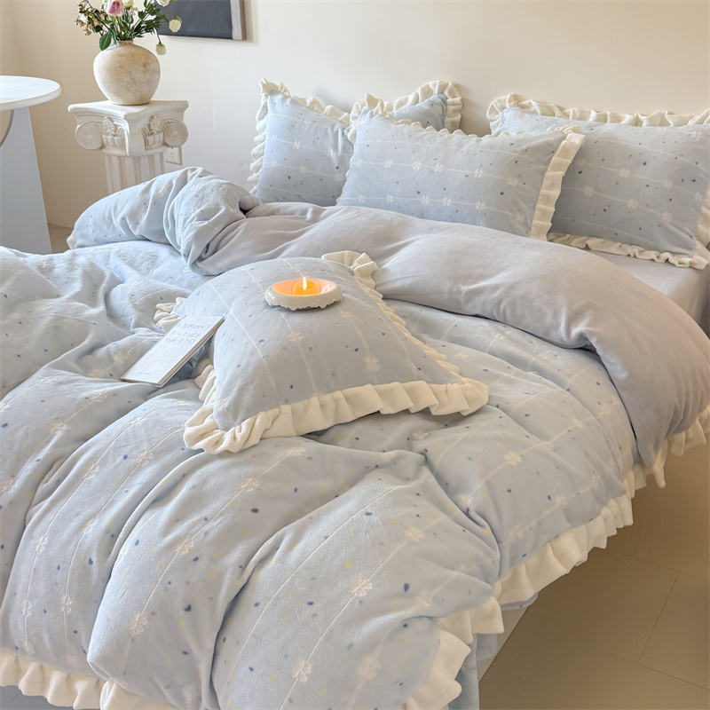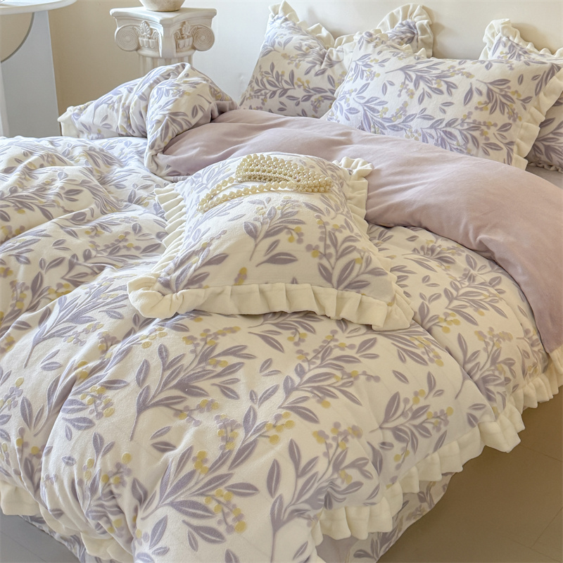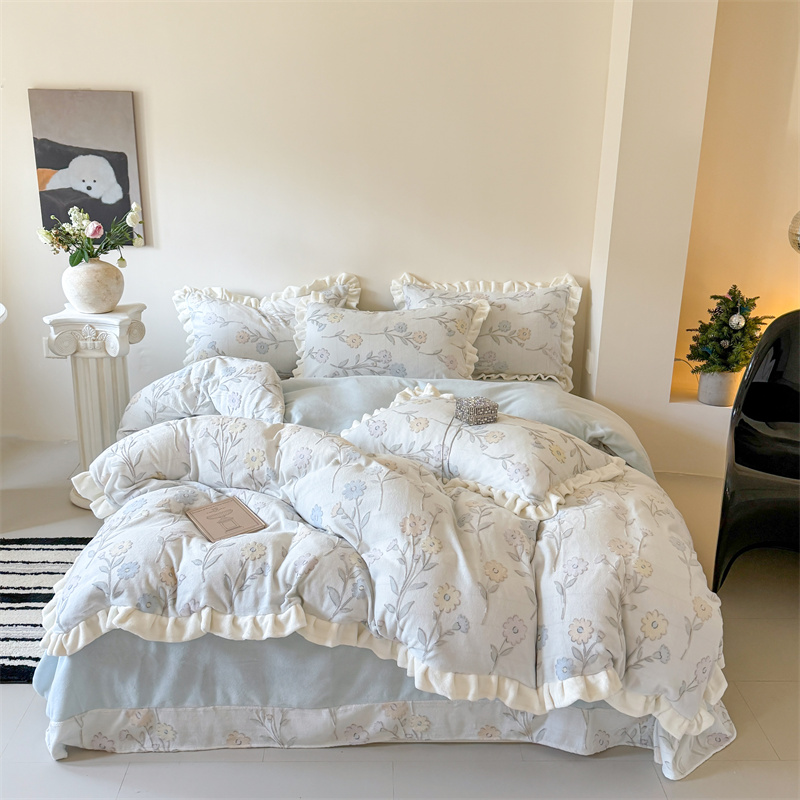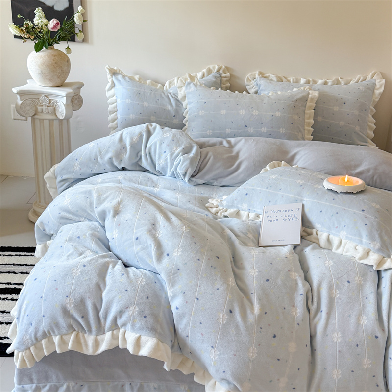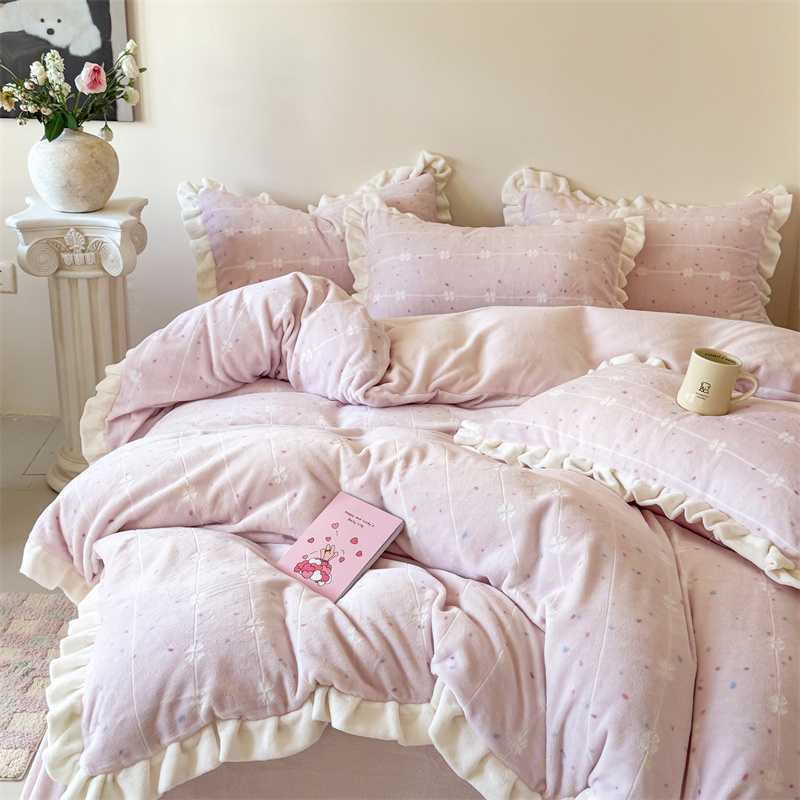 (总)潘朵拉 2023年新款豆豆绒花边牛奶绒四件套,仙芽,兰溪,半眠,向晚,小奶兔,樱桃丸子,粉萝,紫烟,花城,薄荷味,青雅