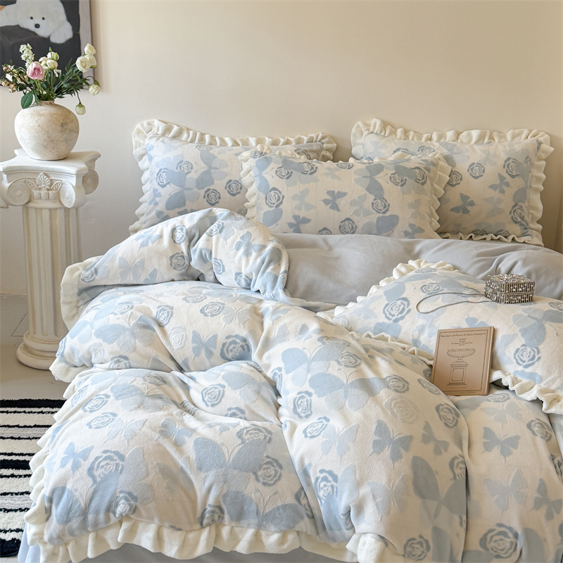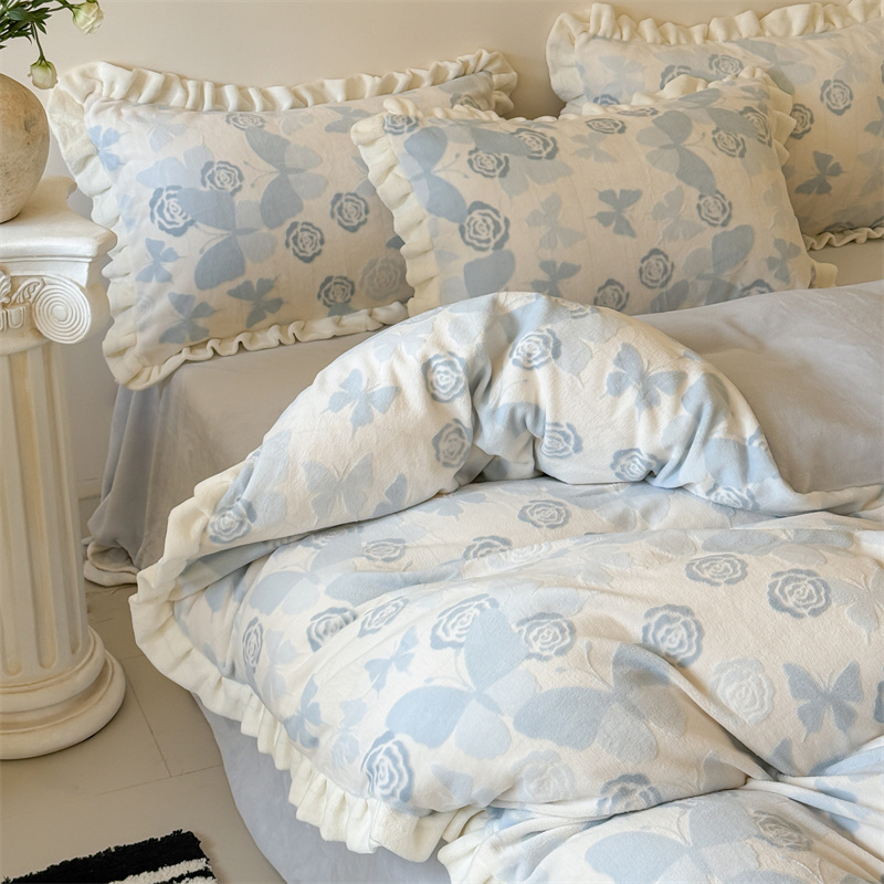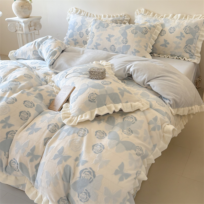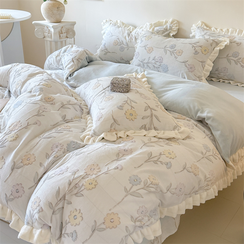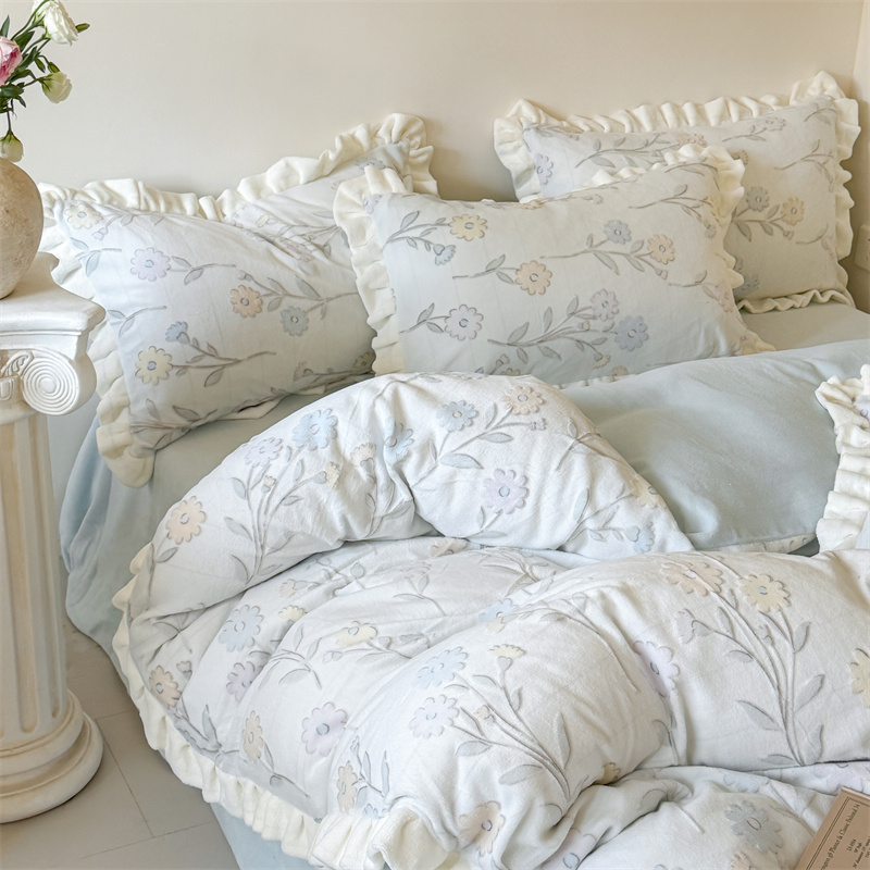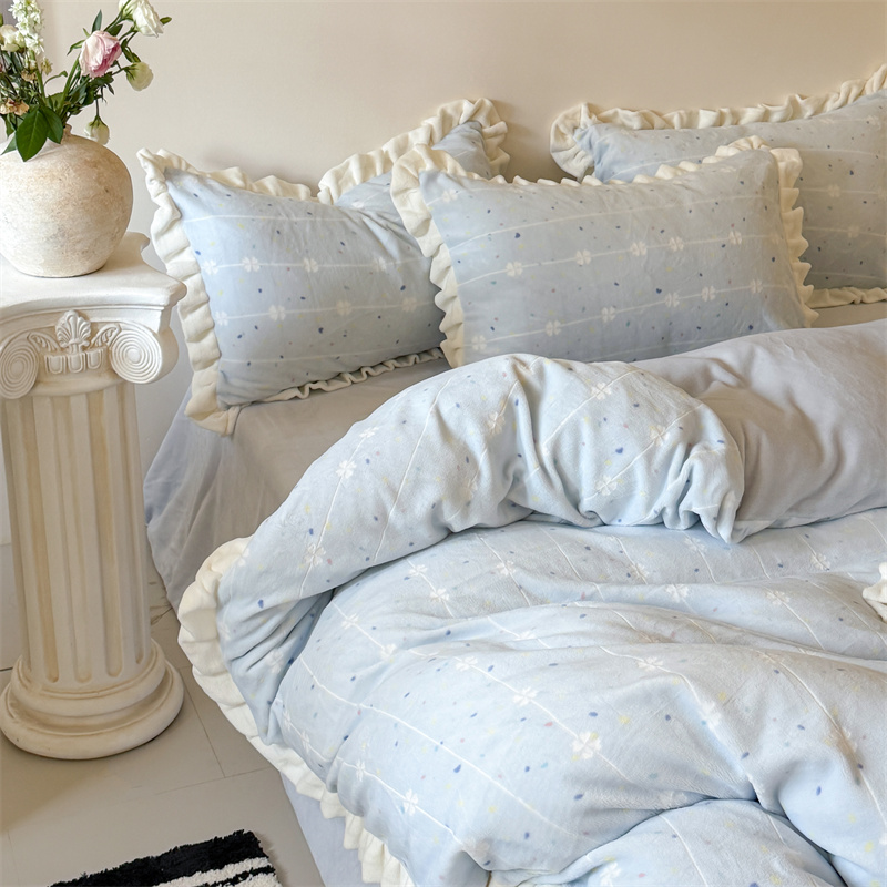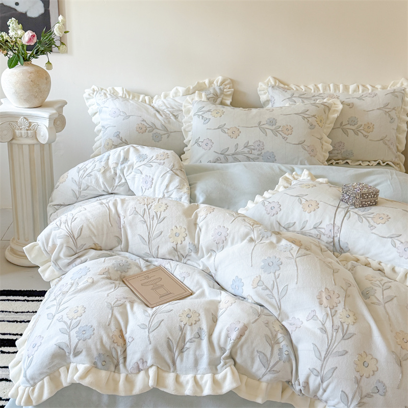(总)潘朵拉 2023年新款豆豆绒花边牛奶绒四件套,仙芽,兰溪,半眠,向晚,小奶兔,樱桃丸子,粉萝,紫烟,花城,薄荷味,青雅