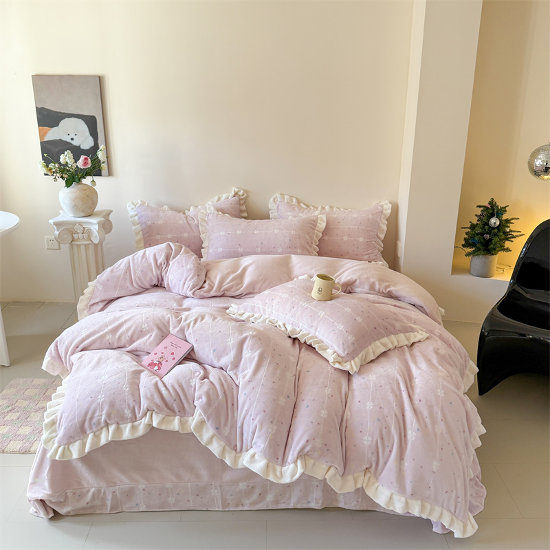 (总)潘朵拉家纺 2025新款法式牛奶绒双层花边四件套,梨禾小姐,梦露,奈雪,南梦,松岛千叶,晚秋,星语,芝士波点,紫密花间,紫苏