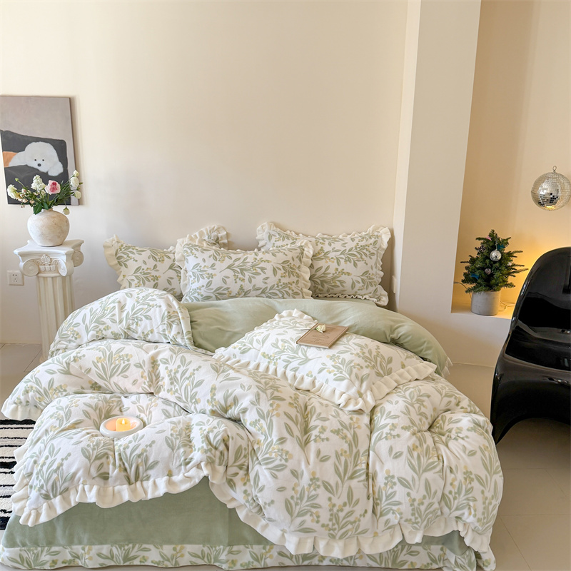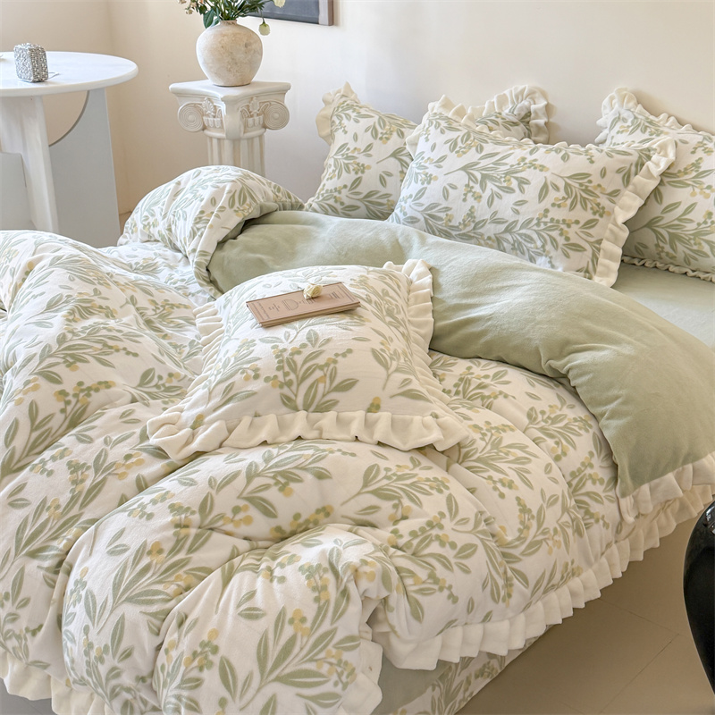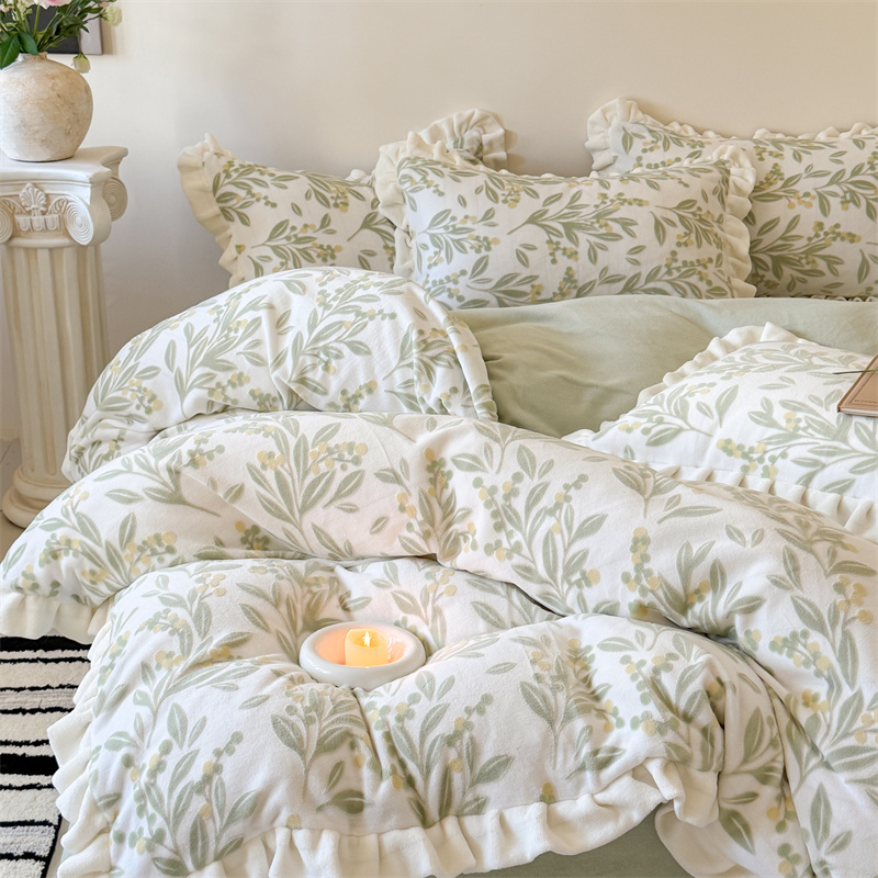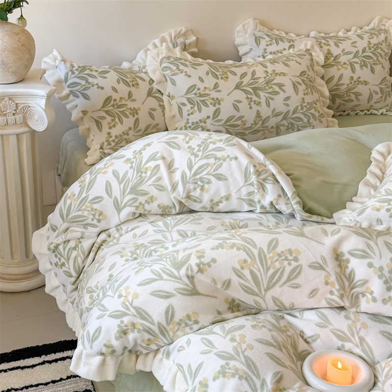 潘朵拉家纺 2025立体着色雕花系列牛奶绒四件套 叶韵-绿