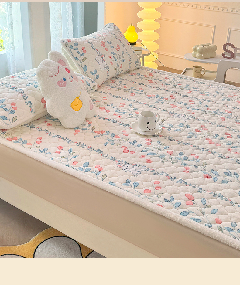 优选 2025热款外贸跨境电商热销款冬季加厚牛奶绒印花床垫床垫学生单人宿舍上下铺 花间小兔