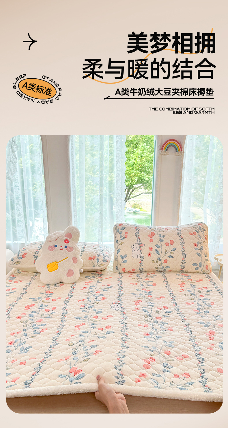 商品名称:优选 2025热款外贸跨境电商热销款冬季加厚牛奶绒印花床垫床垫学生单人宿舍上下铺 花间小兔