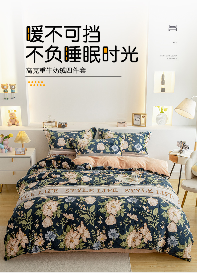当前位置: 91家纺网 > 商品网购 > 床品套件 > 四件套 > 牛奶绒四件套 > 宅部落 2025新款高克重牛奶绒四件套法莱绒三件套单被套 兰黛佳人