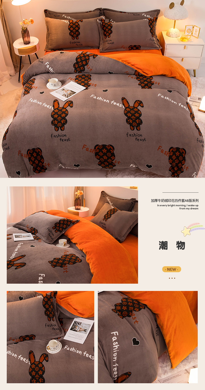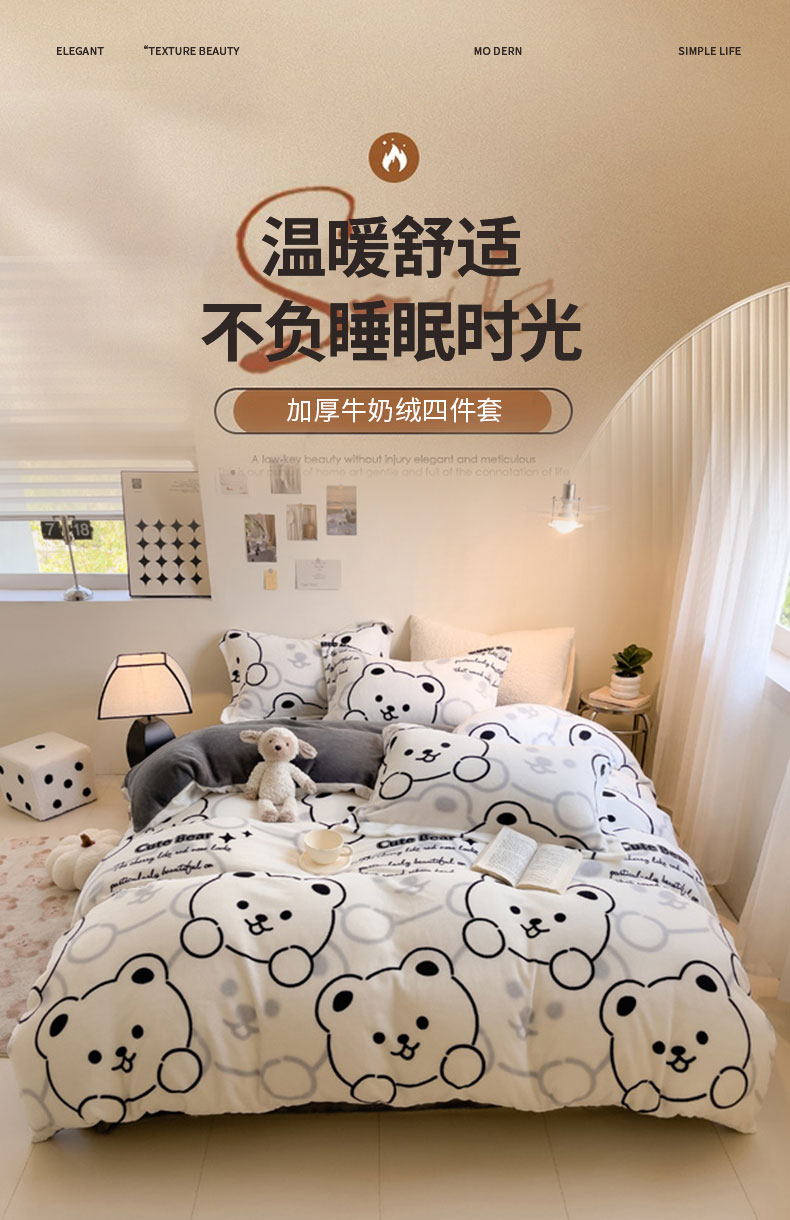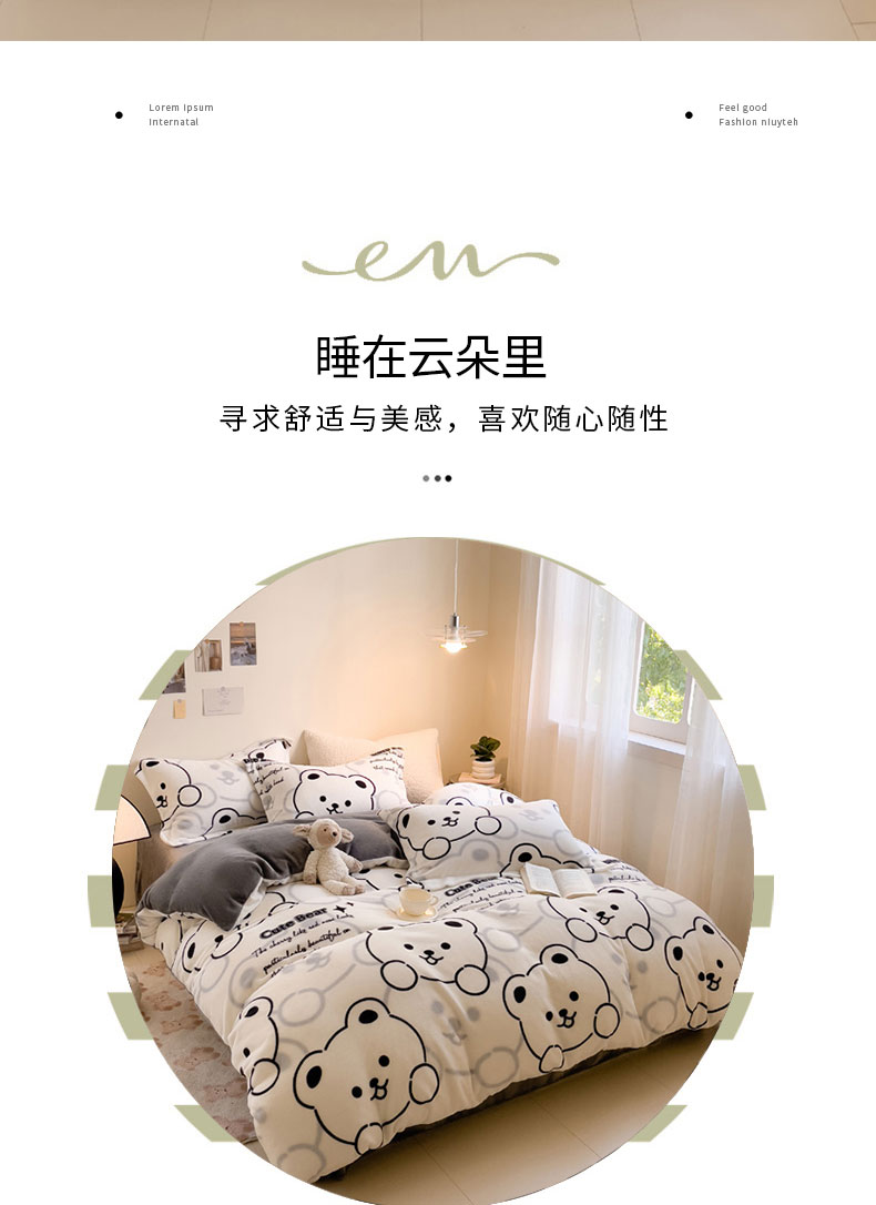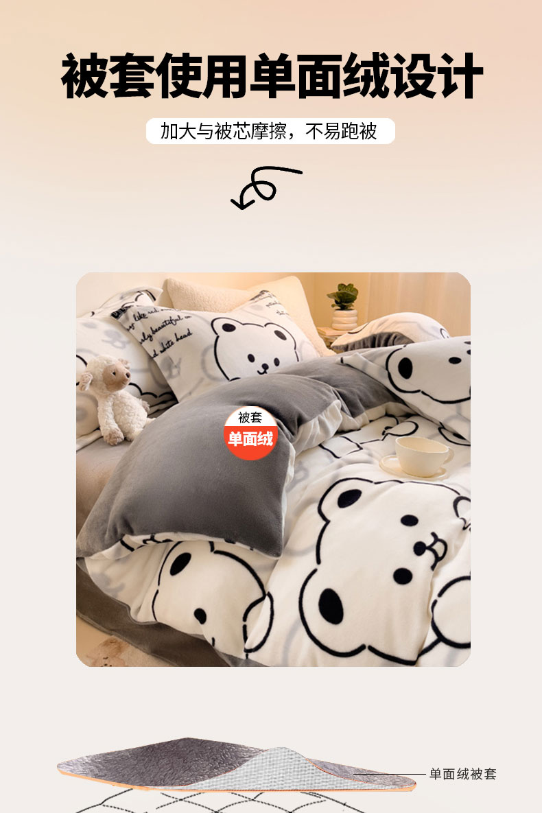 当前位置: 91家纺网 > 商品网购 > 床品套件 > 四件套 > 牛奶绒四件套 > 宅部落 2025新款高克重牛奶绒四件套法莱绒三件套单被套 小熊熊