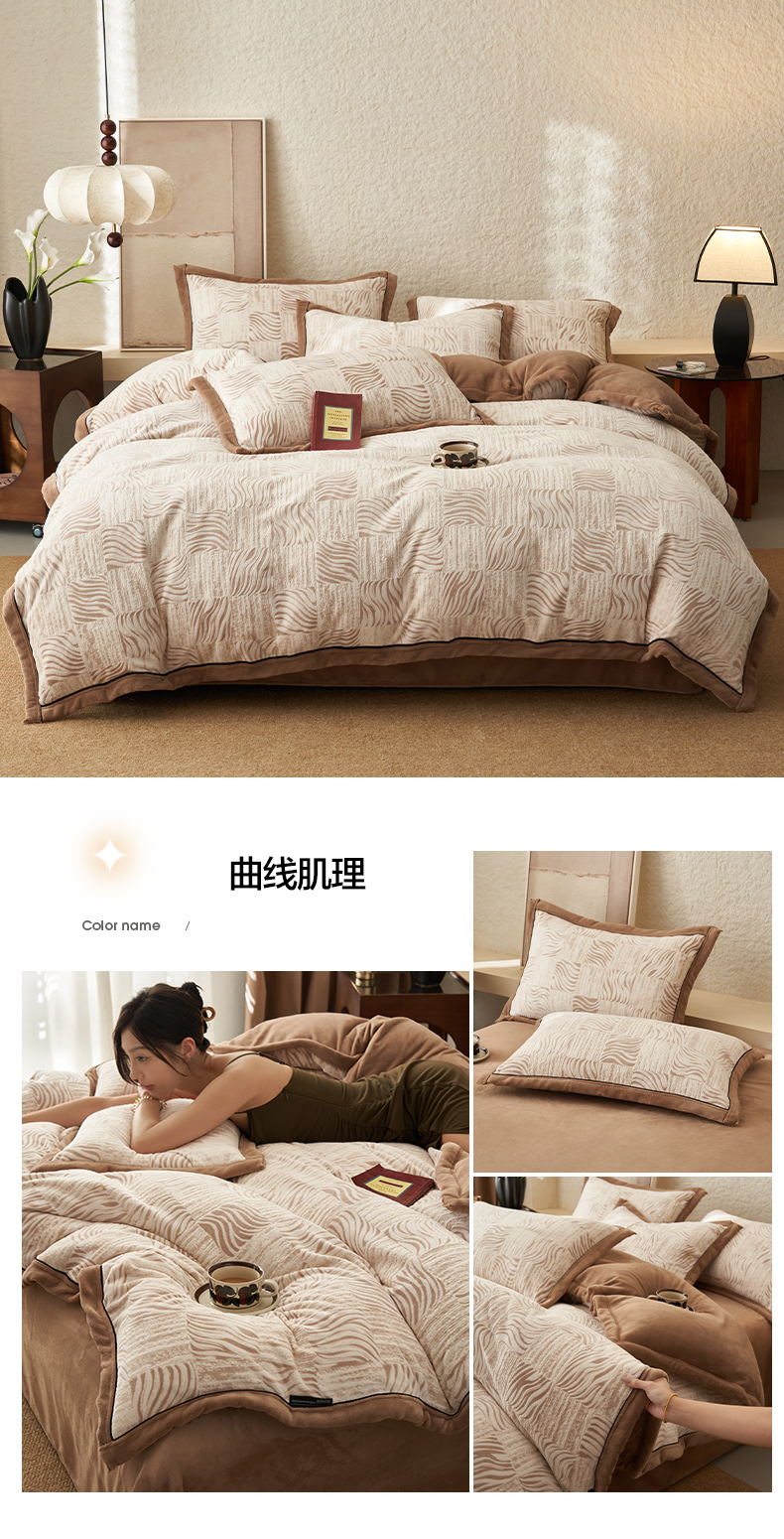 当前位置: 91家纺网 > 商品网购 > 床品套件 > 四件套 > 牛奶绒四件套 > 寐绸家纺 2025秋冬新款230g牛奶绒染色雕花四件套 雕花四件套-大理石纹