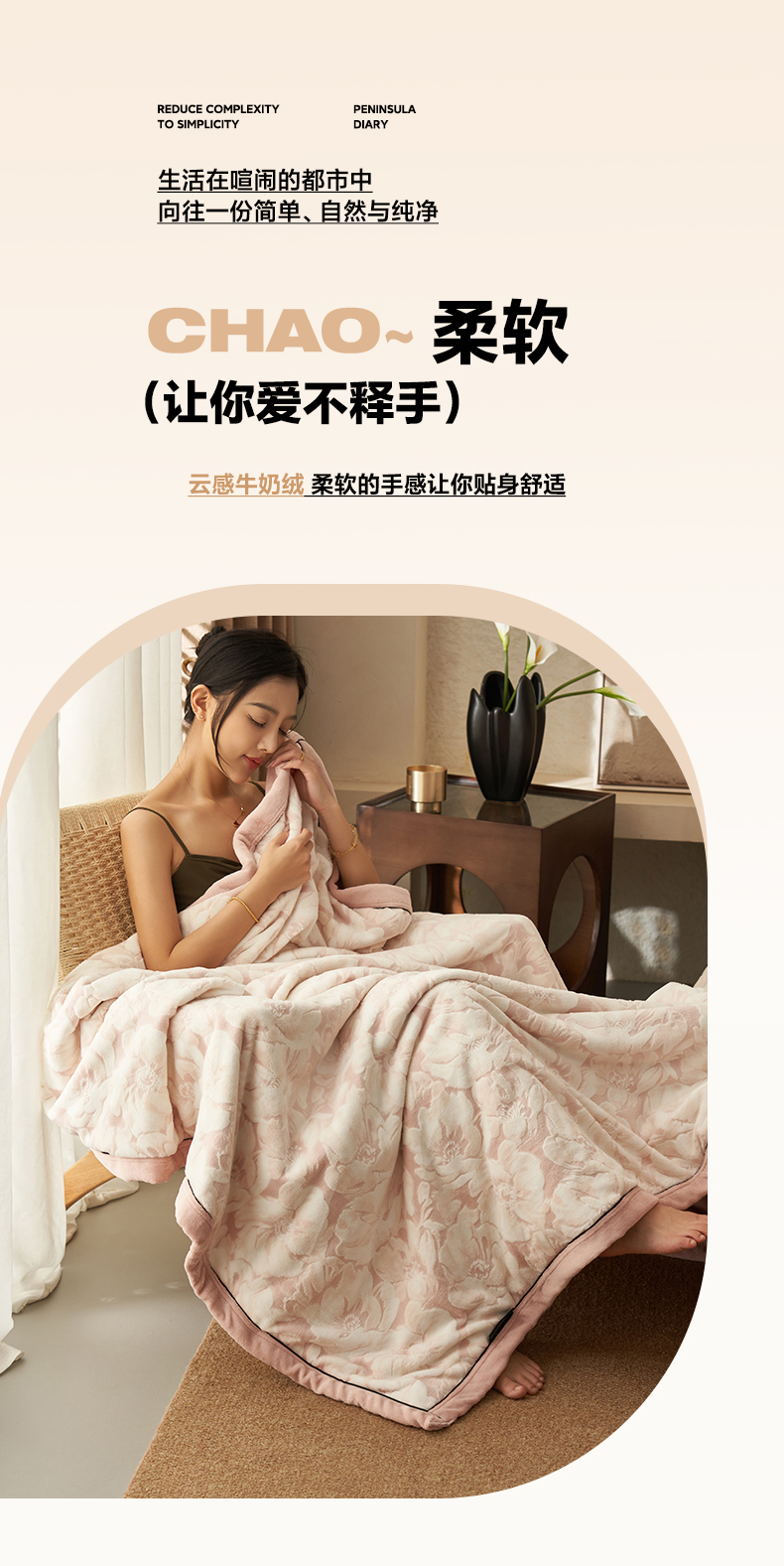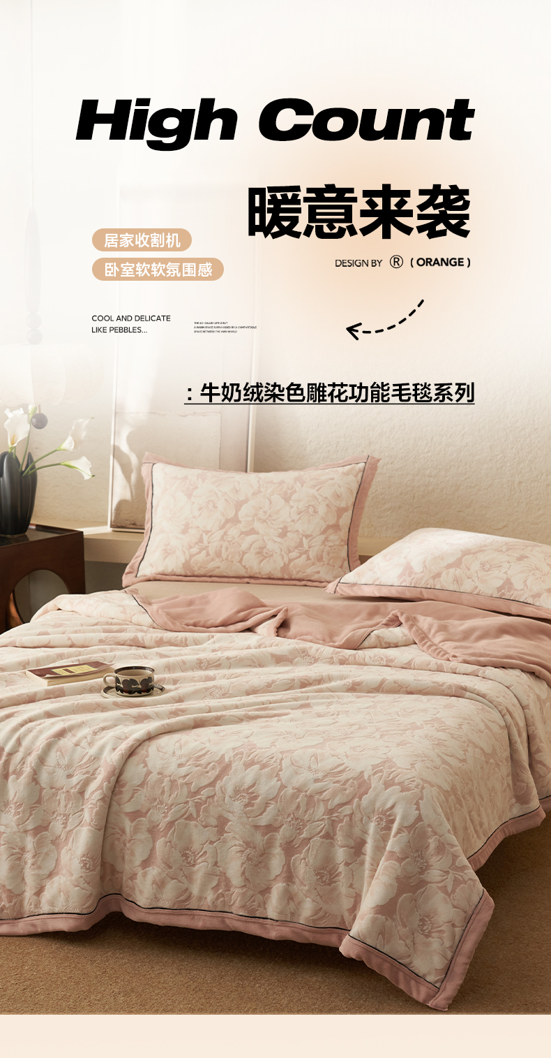当前位置: 91家纺网 > 商品网购 > 毛毯休闲毯绒毯 > 毛毯 > 寐绸家纺 2025新款230g牛奶绒染色雕花功能毛毯 雕花功能毯-绽放