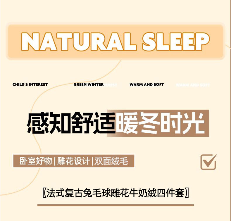 商品名称:十里居 2025新款法式复古兔毛球雕花牛奶绒四件套 玫瑰-绿