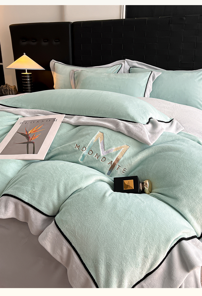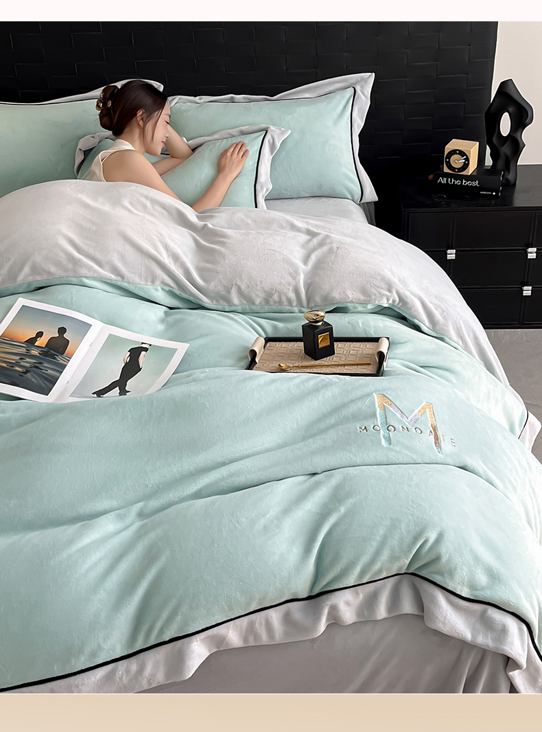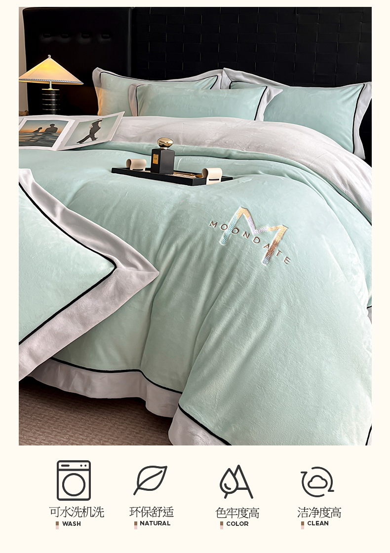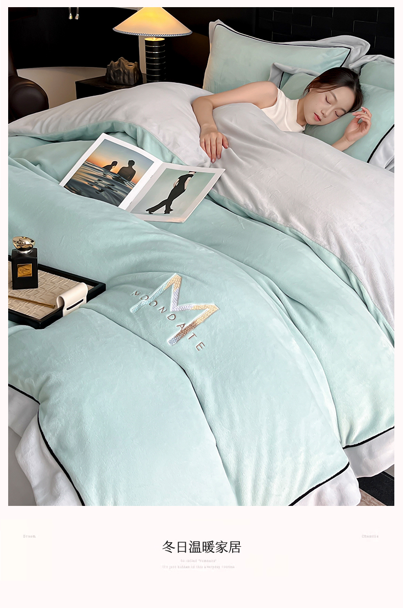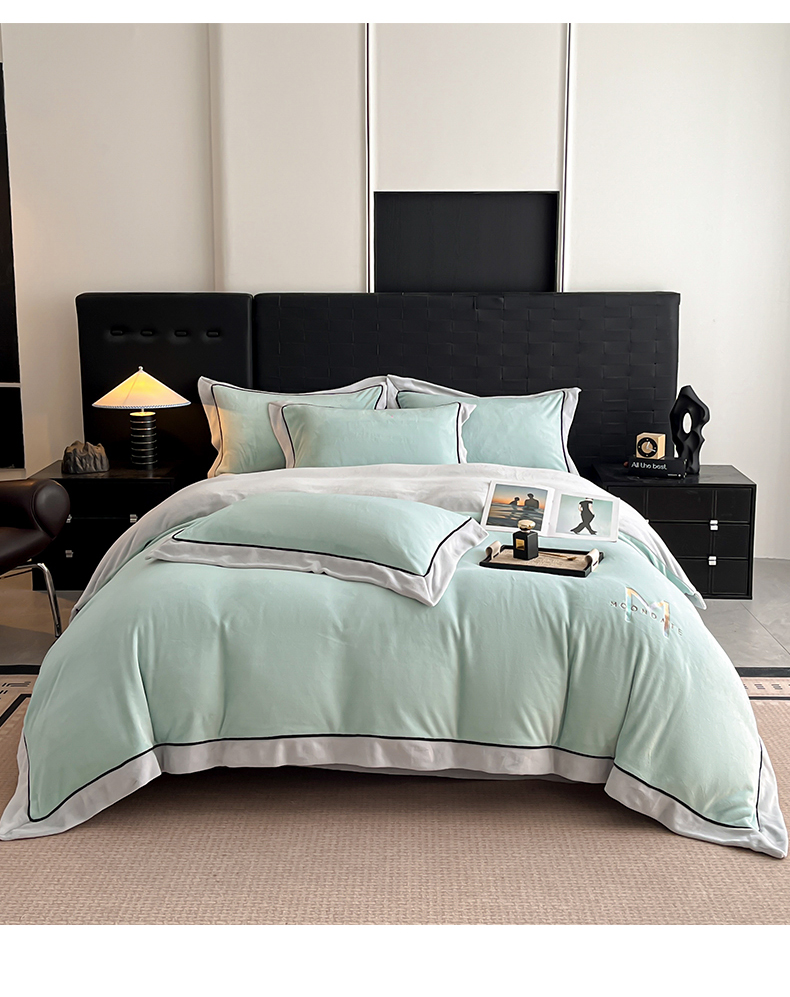 遇见家居生活馆 2025新款A类牛奶绒玛利亚绒宽边四件套(控价:标准188,加大198,床笠款193) 清澈蓝+星辰灰