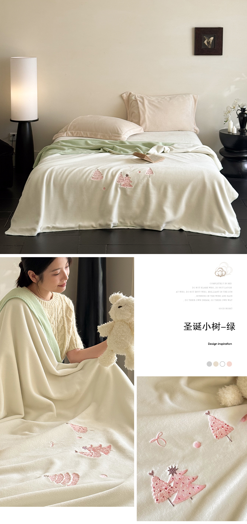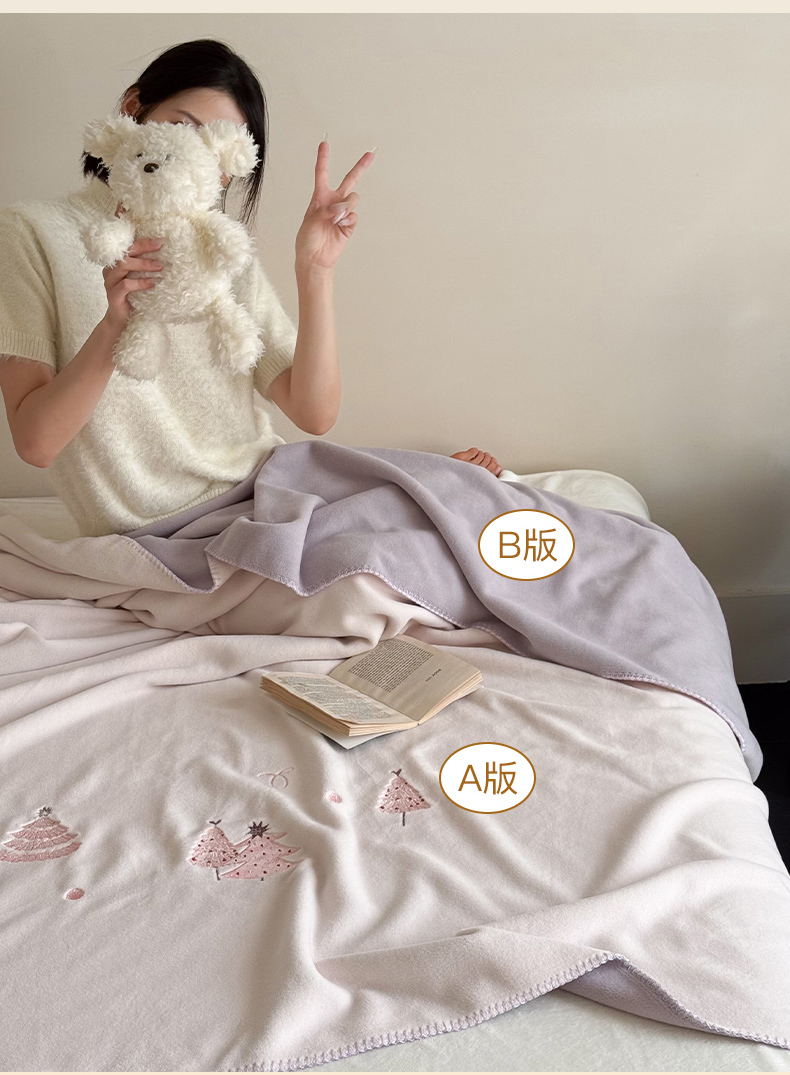 (总)云栖家居 2025新品双层加厚高克重消光沙发毯仿羊绒纯色刺绣盖毛毯毯子,山茶-粉,山茶-蓝,圣诞小树-粉,圣诞小树-绿,甜心蝴蝶结-紫,小狗查理-蓝,小熊猫-绿