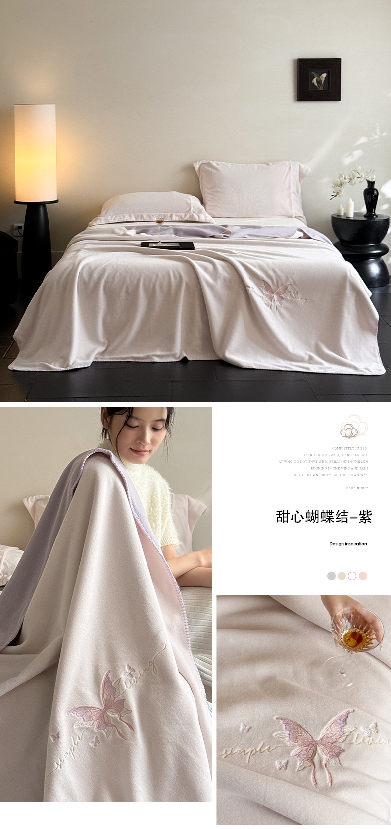 (总)云栖家居 2025秋冬新款加厚纯色刺绣牛奶绒四件套-福蝶多多,福蝶多多-粉,福蝶多多-紫