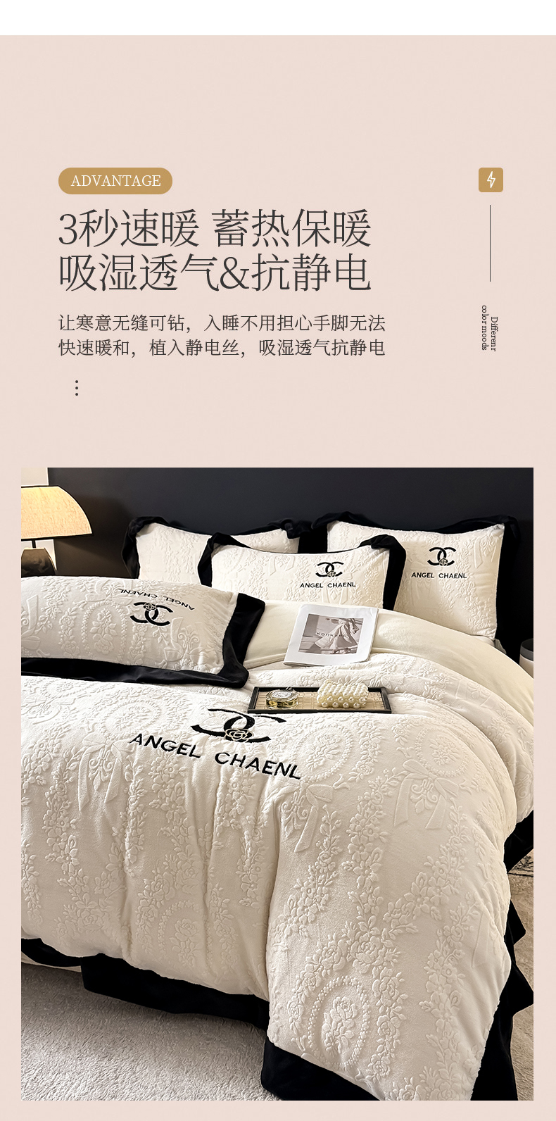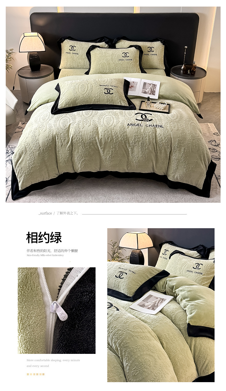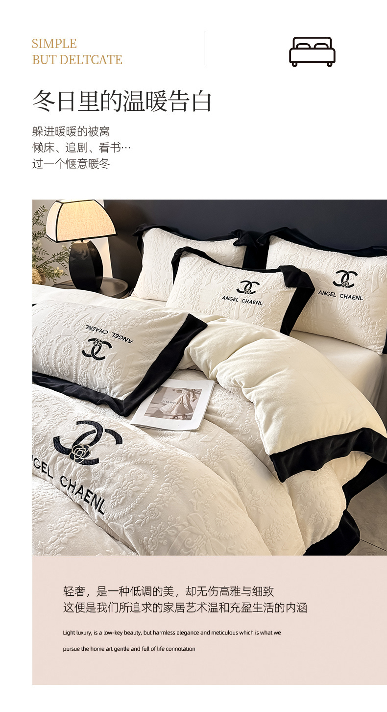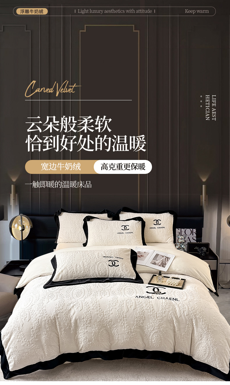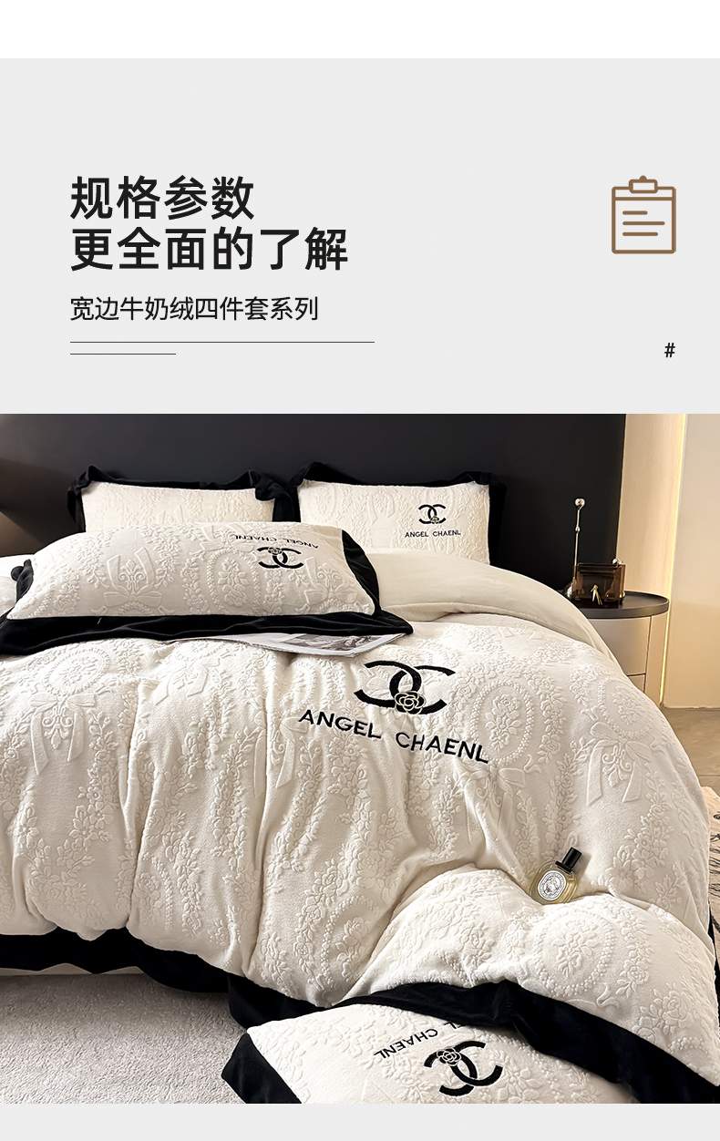 (总)KA家纺 2025冬季高克重绣花雕花牛奶绒四件套