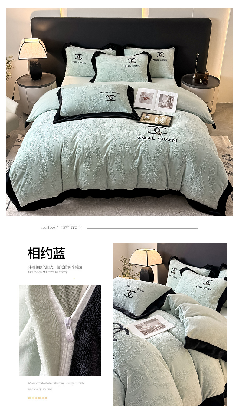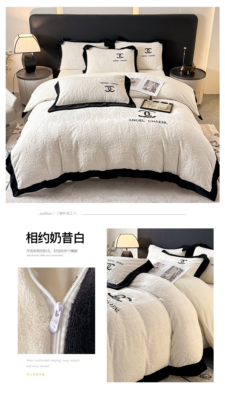 (总)KA家纺 2025新款冬季设计师款牛奶绒刺绣四件套沐言系列,沐言白+卡其,沐言白+蓝,沐言粉,沐言蓝