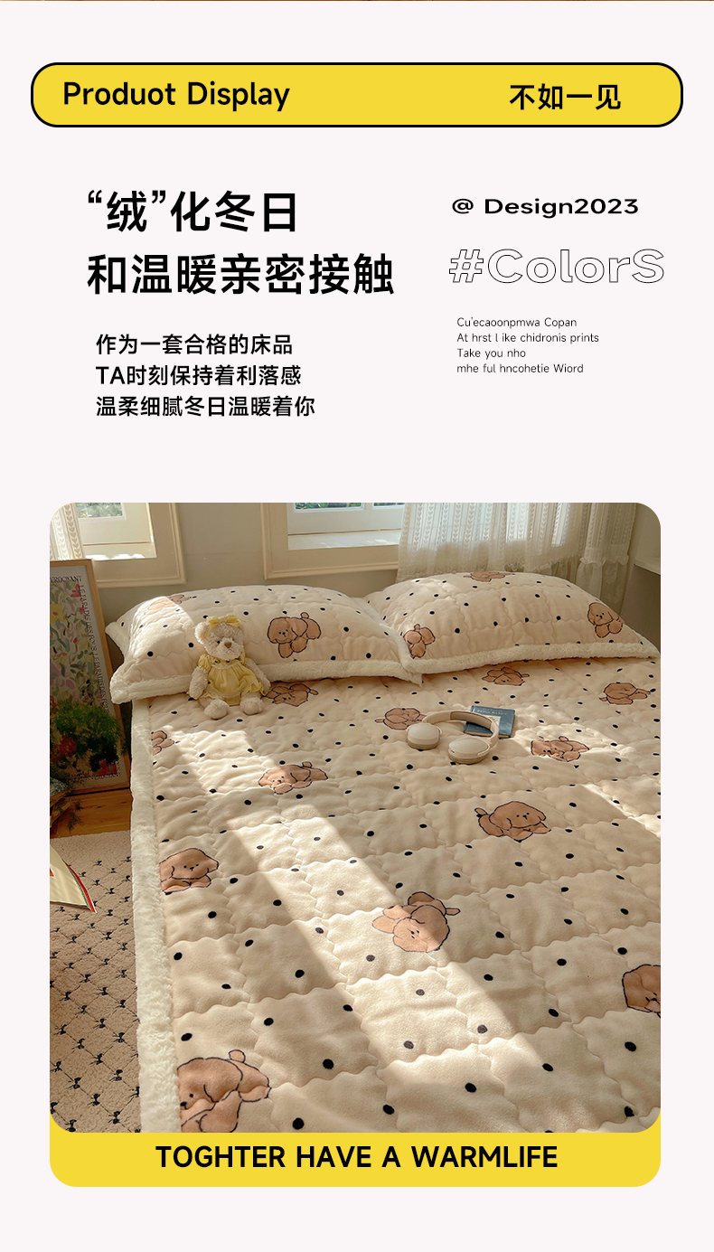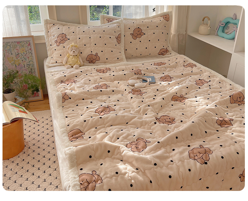 (总)红嘴企鹅 2025新款花边加厚牛奶绒单品床盖单件床盖三件套,波点狗,波点猫,大力,蛋糕狗,点心,蝶梦,动物乐园,蝴蝶狗狗,可爱比熊,萌萌熊,梦幻小熊,摩卡熊,奶油狗,平安猫,棋盘狗,少女猫咪,生日Party,圣诞老人,圣诞猫,淘气狗,小星甜点,星星乐园,星云小熊,羞羞猫,字母熊