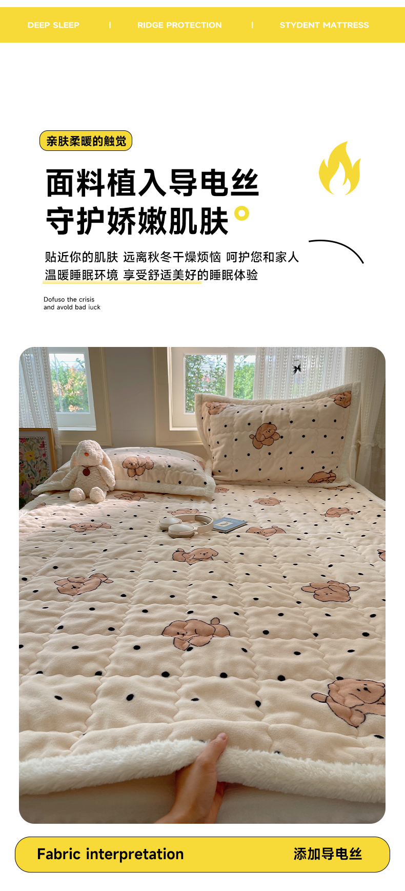 商品名称:(总)红嘴企鹅 2025新款高克重牛奶绒印花床护垫床褥